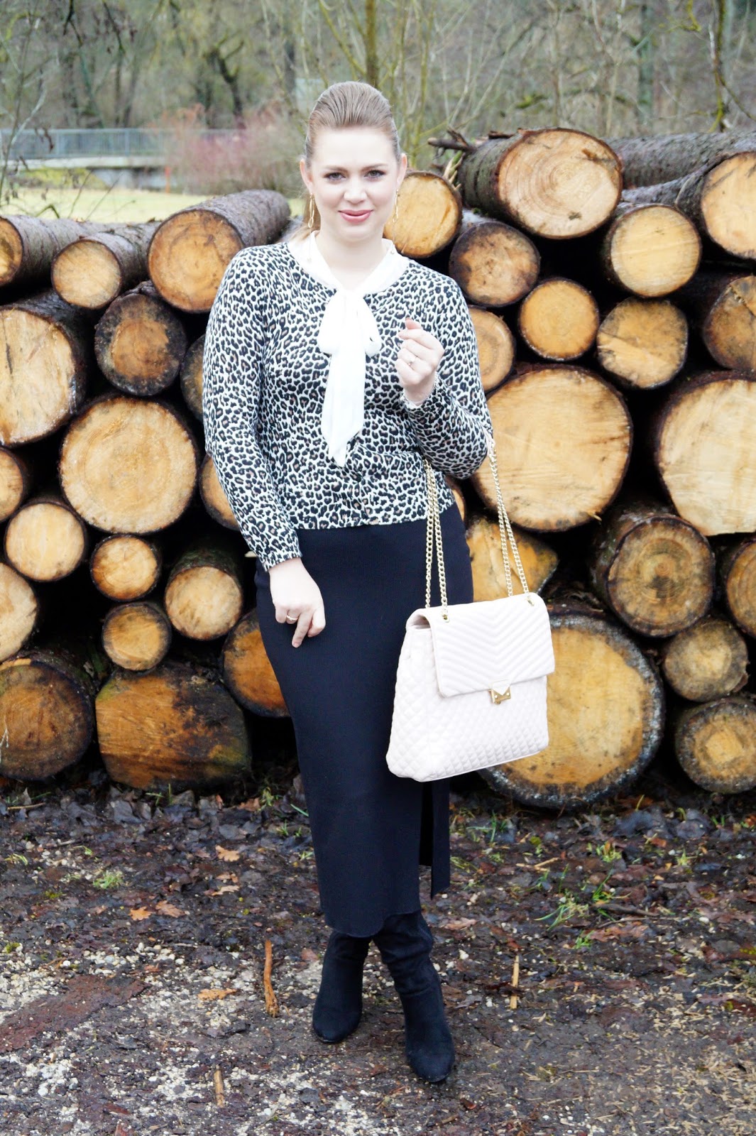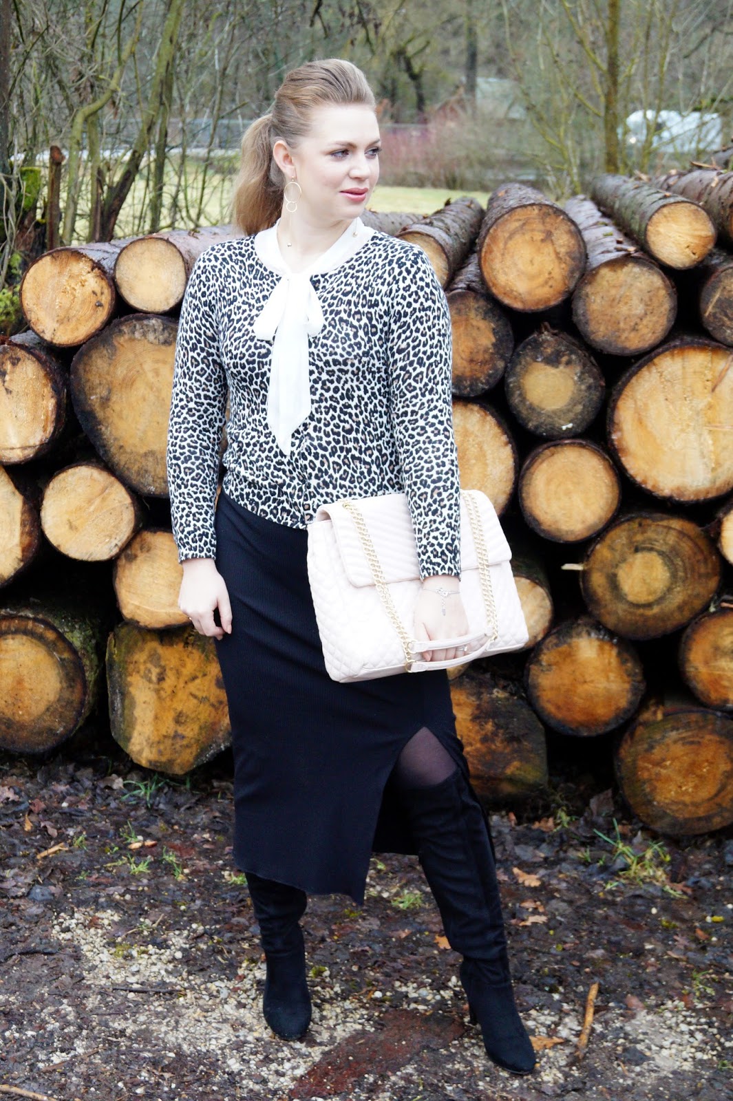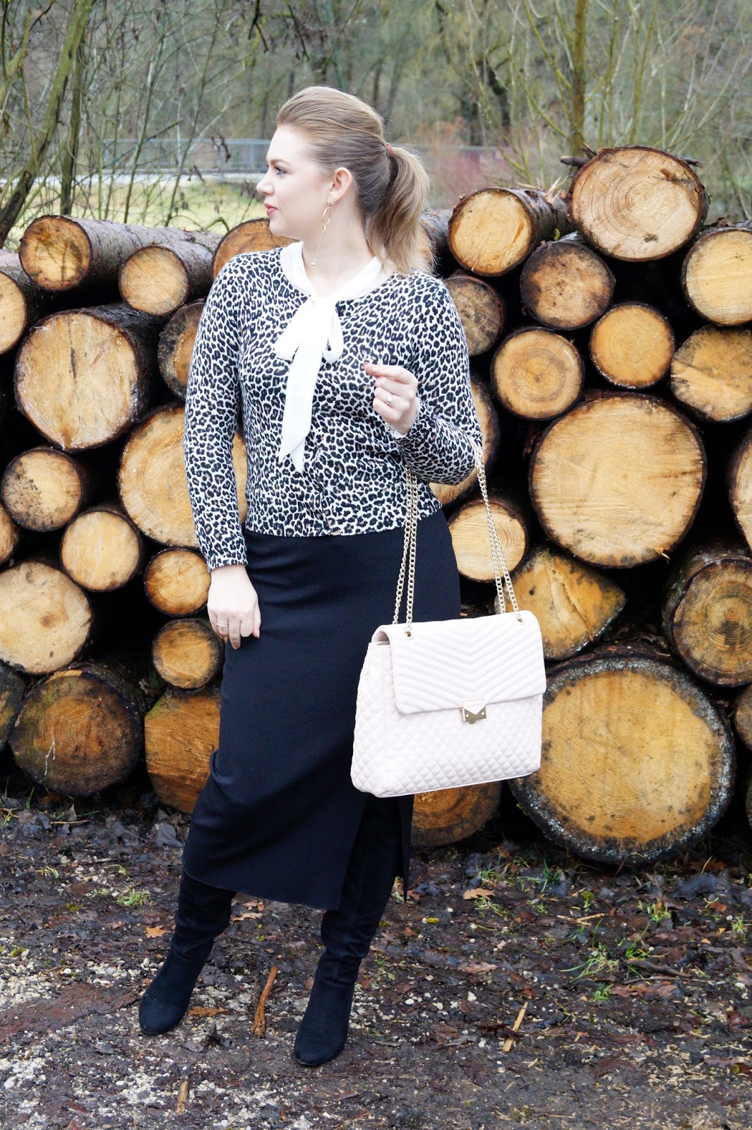 I am totally into comfortable fashion lately and this skirt is no exception. It totally nestles onto your body and I love the side slit as well. I got this pussybow blouse for underneath cardigans or pullovers since this is very sheer and I think i wouldn´t wear it without covering my upper body or maybe with a top underneath. The leopard print cardigan is pretty old but still one of my favorites since this trend will last a long time (I believe so).