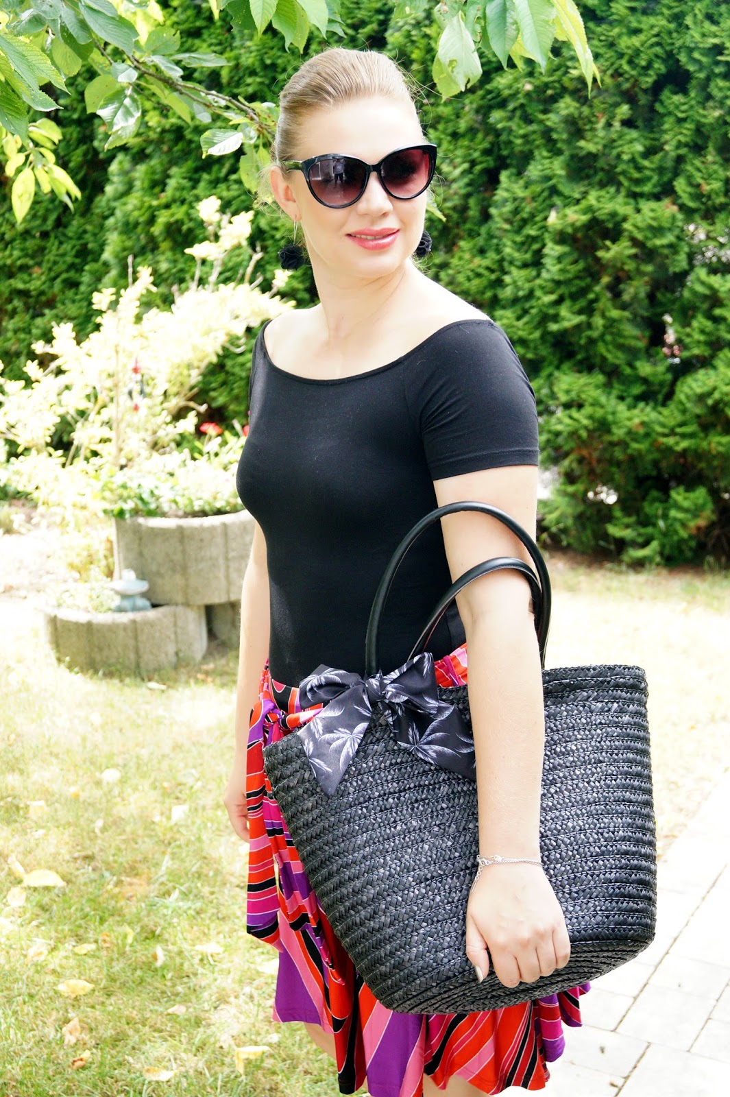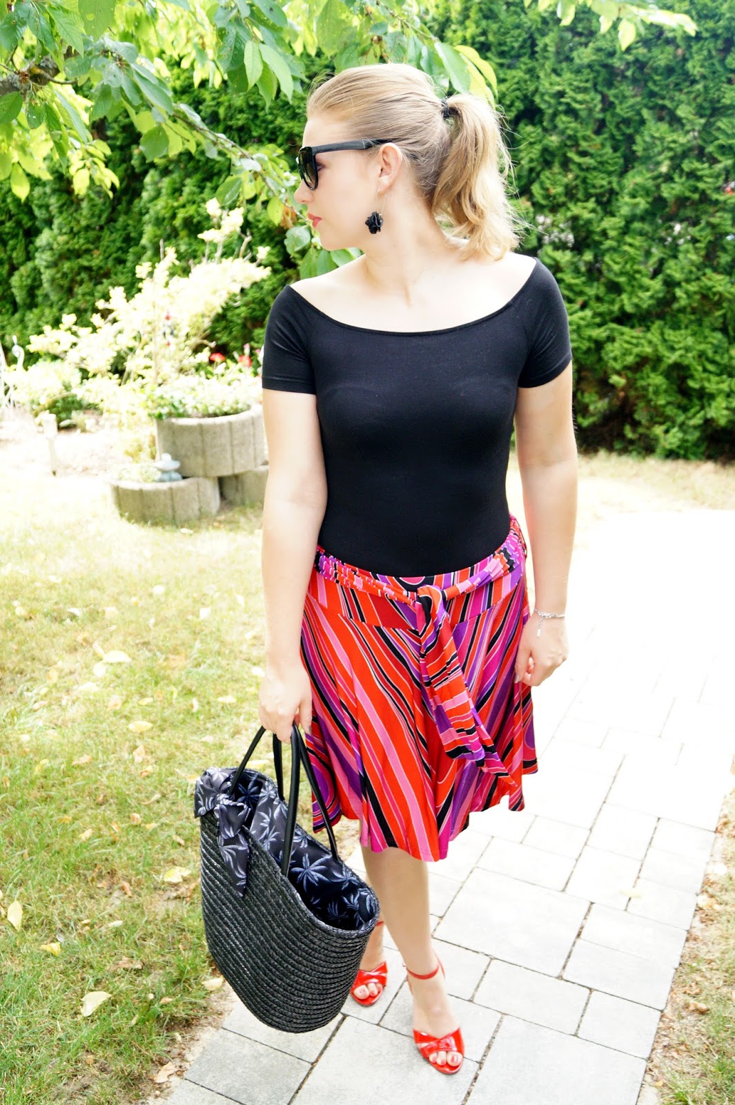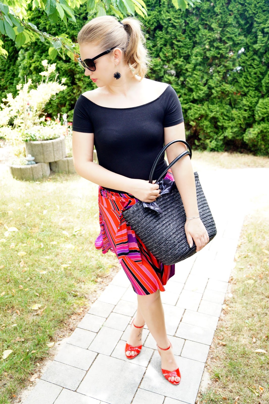 skirt H&M old similar here and here / top H&M basics similar here / sandals even & odd old similar here and here / black straw bag from a local store similar here and here / earrings sixx old similar here and here