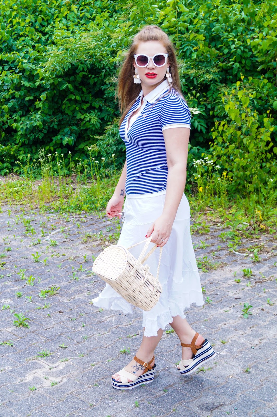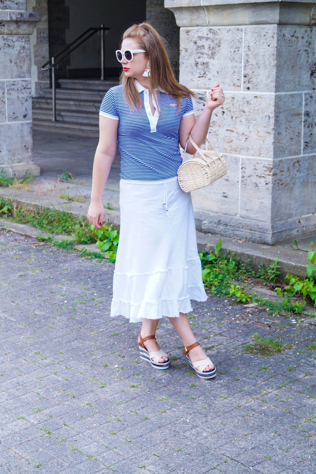skirt old similar here and here / polo shirt conbibel old similar here and here / wedges Schuhtempel24 sold out simlar here and here / basket bag Mango sold out similar here and here / lips MAC – MAC Red