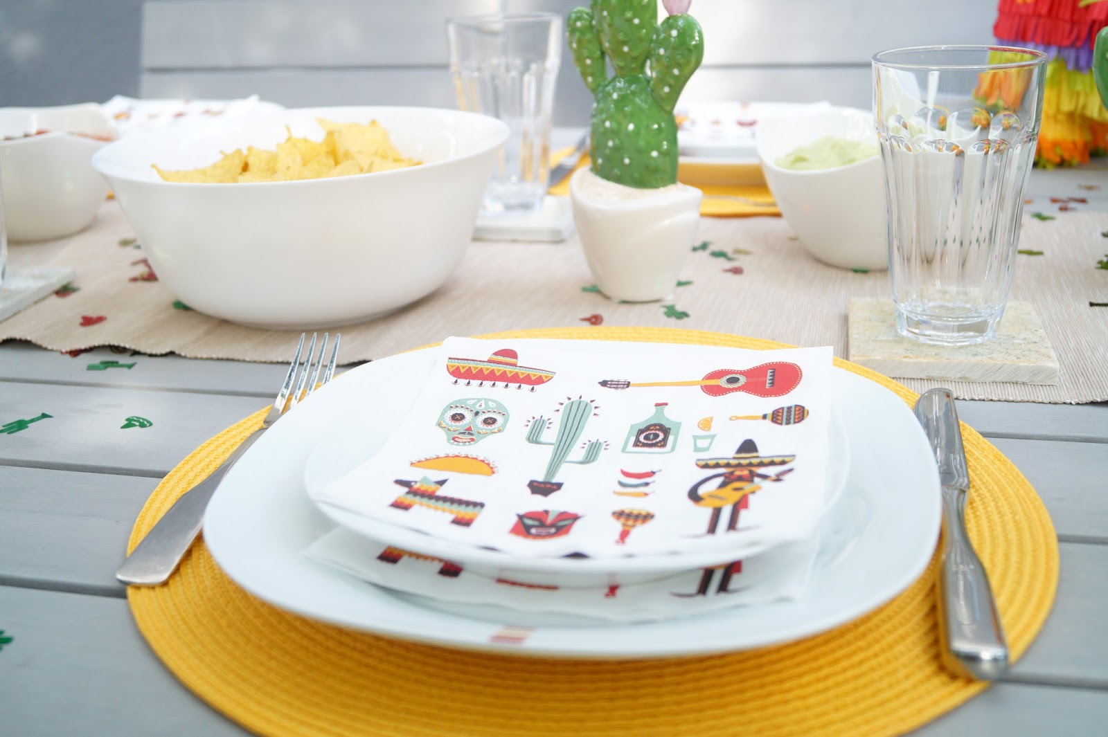 little sombreros, matching confetti and a piñata. The napkins are from Butlers and they are the cutest I could have found. Most of the decoration is from amazon cause they just have everything.