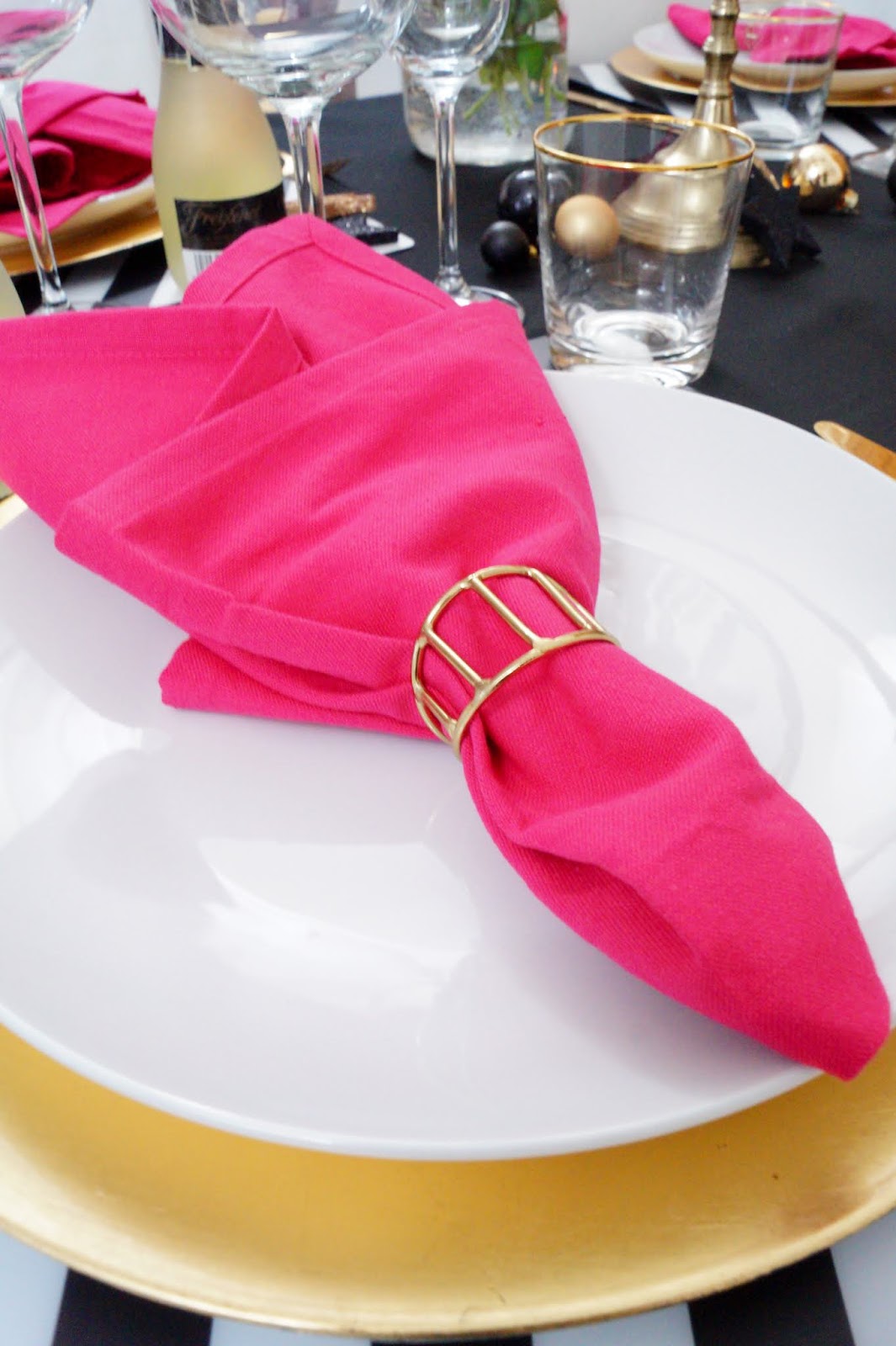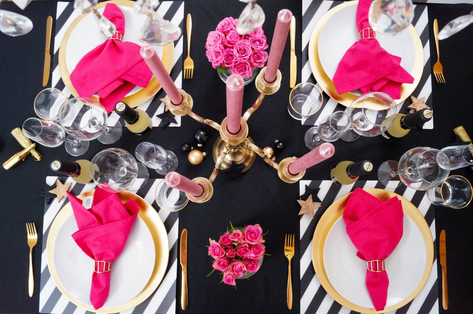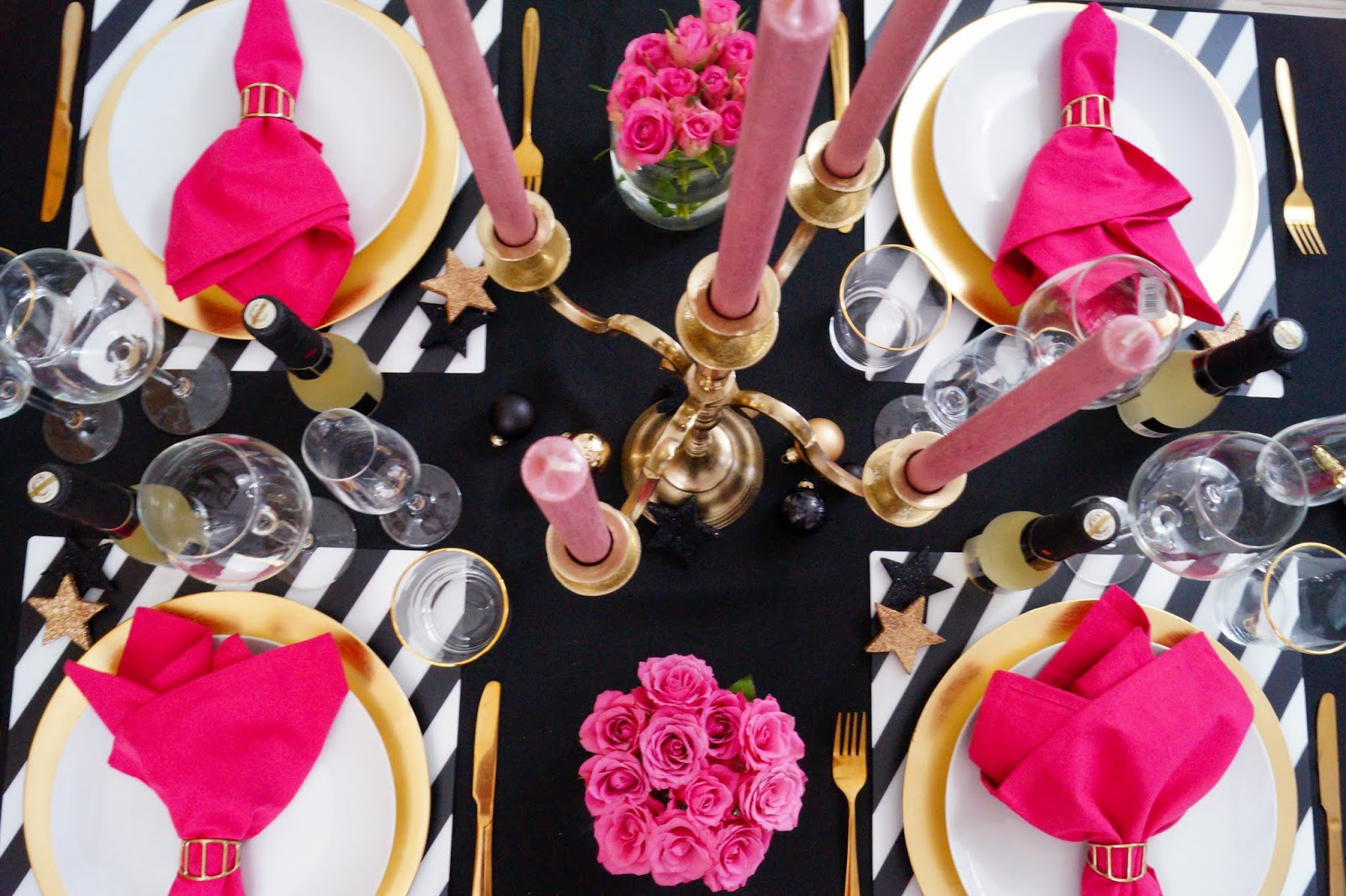 Modern Christmas Dinner Table Scape in Pink, Black + Gold…