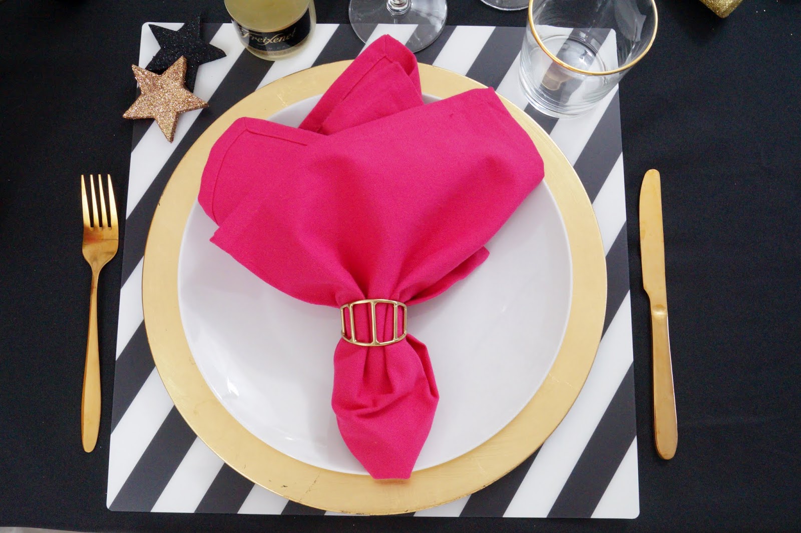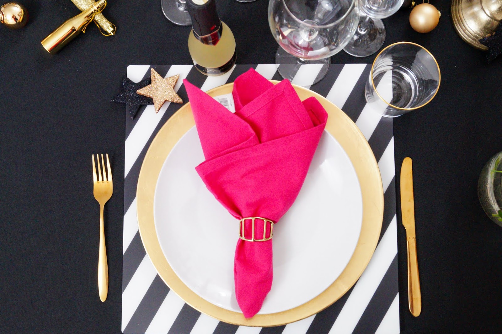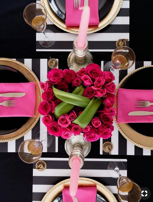 Modern Christmas Dinner Table Scape in Pink, Black + Gold…