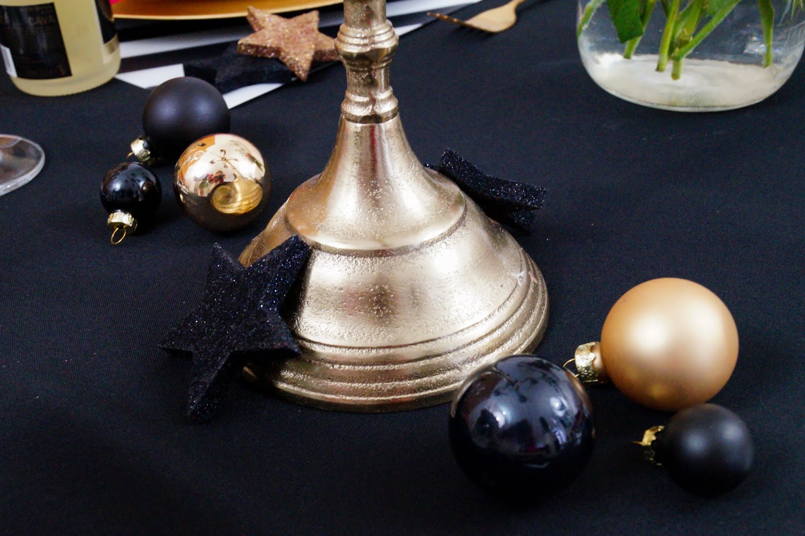 I have a different table scape every season (it usually matches the color I have decorated my tree) and this year I only made a little change. I wanted the table scape to be black, gold and pink like the ornaments on the tree but (I recently discovered this) the gold on the ornaments is silver – oh boy. Since I already had all the pieces I needed and didn´t want to get everything gold in silver I just went with the gold.
