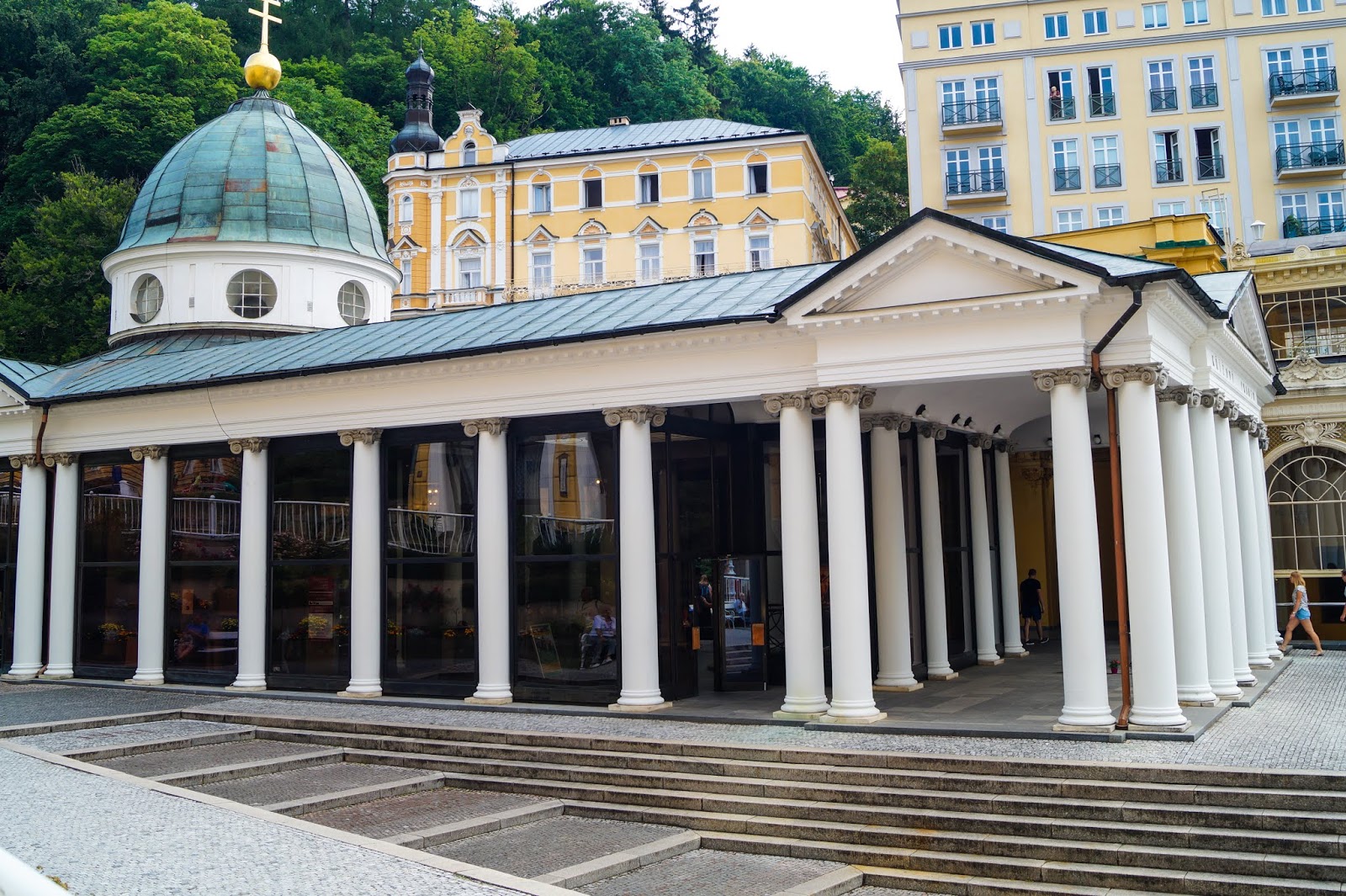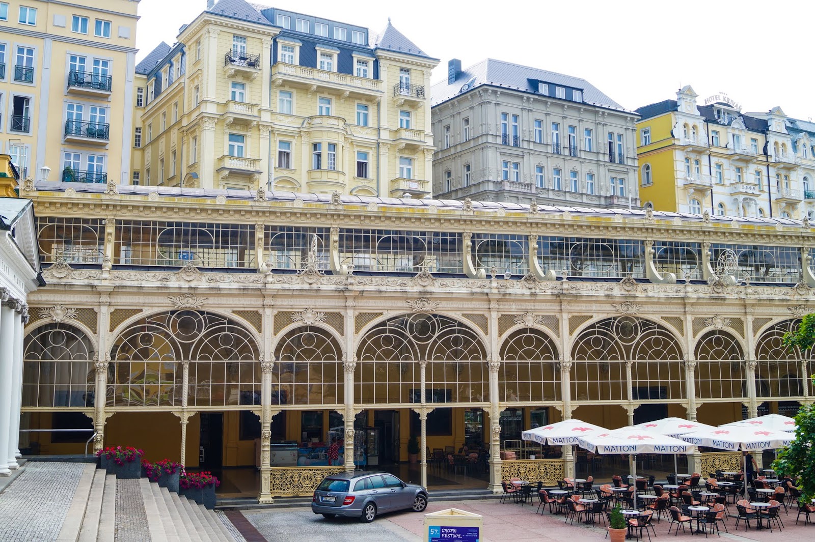 On our way back we went through the collonnade (this building is from 1827 and the arches and windows are so beautiful). This was the main area of Marienbad in the earlier years where everybody gathered when something happened or when there was a celebration. Like a village square. Also located here is a „Singing“ fountain. The fountains plays music at every odd hour.