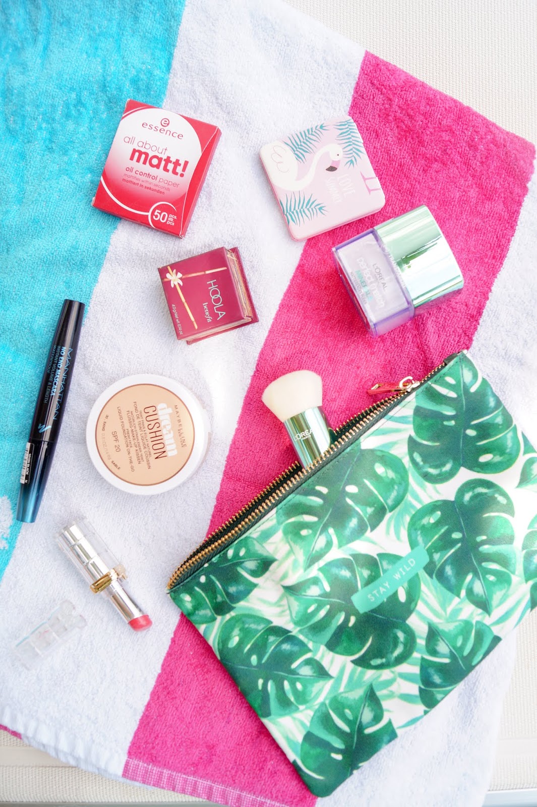 Also a good idea is too take some blotting papers with you to the pool. This way your make-up stays on and you don´t shine also you don´t have to reapply every couple hours.