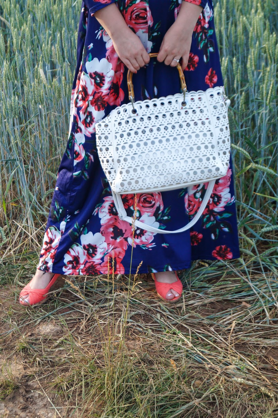 I paired it with a matching pair of wedges and a white laser cut shopper with bamboo handles.