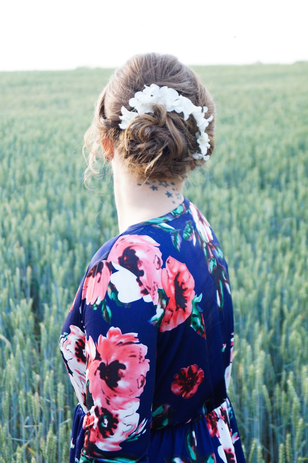 I really love blue and explicit the baby blue and navy shades. Navy is such a deep and mysterious color which I personally love a lot. Other colors can be combined so well with navy and coral makes no exception. The coral flowers on the dress make it a reall Summer piece I adore so much.