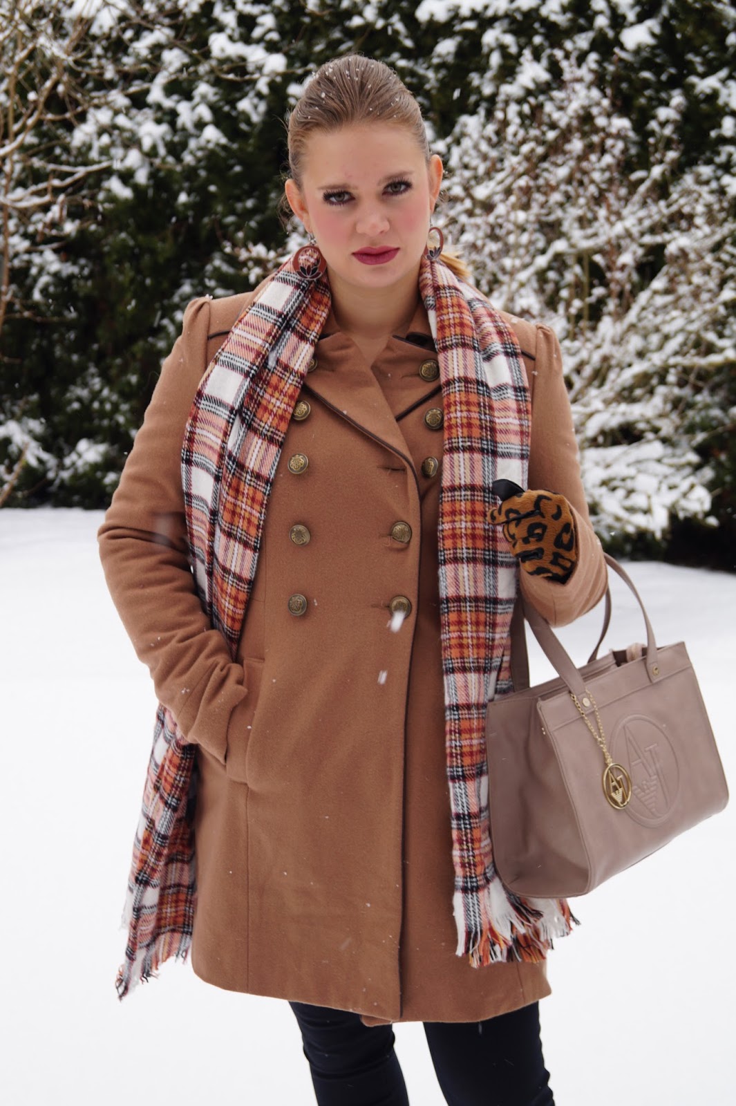 Um das ganze ein bisschen aufzupeppen habe ich Handschuhe mit Leopardenmuster mit einem karierten Wollschal kombniert.
