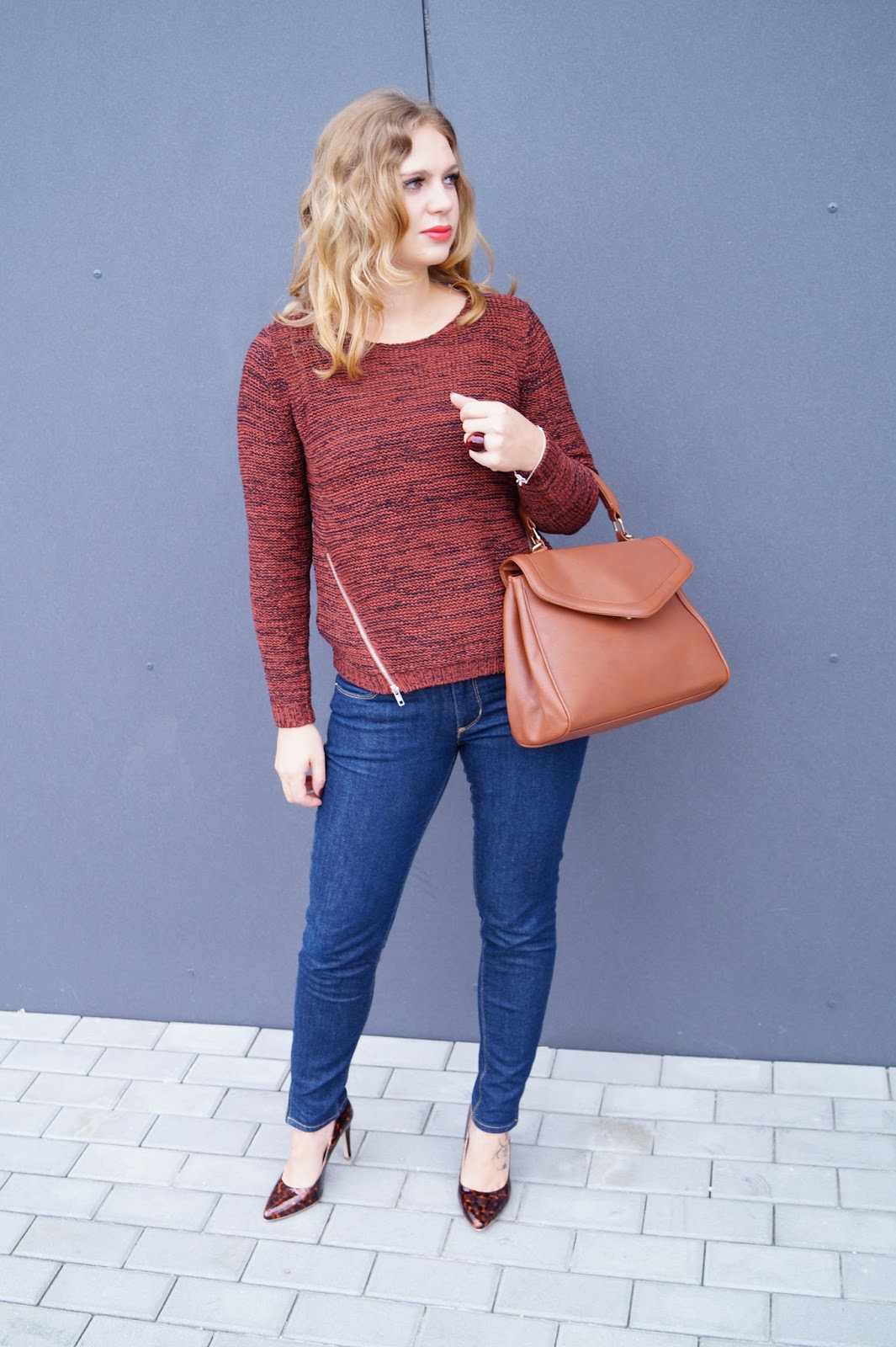 sweater weather has finally arrived and I am totally into it. Who doesn´t like a cozy and warm sweater when the cold winds are blowing and rain drops are pooring down. I like the look of this pullover a lot. The two tone yarn and the two zipper details on the front make it a special unique piece.