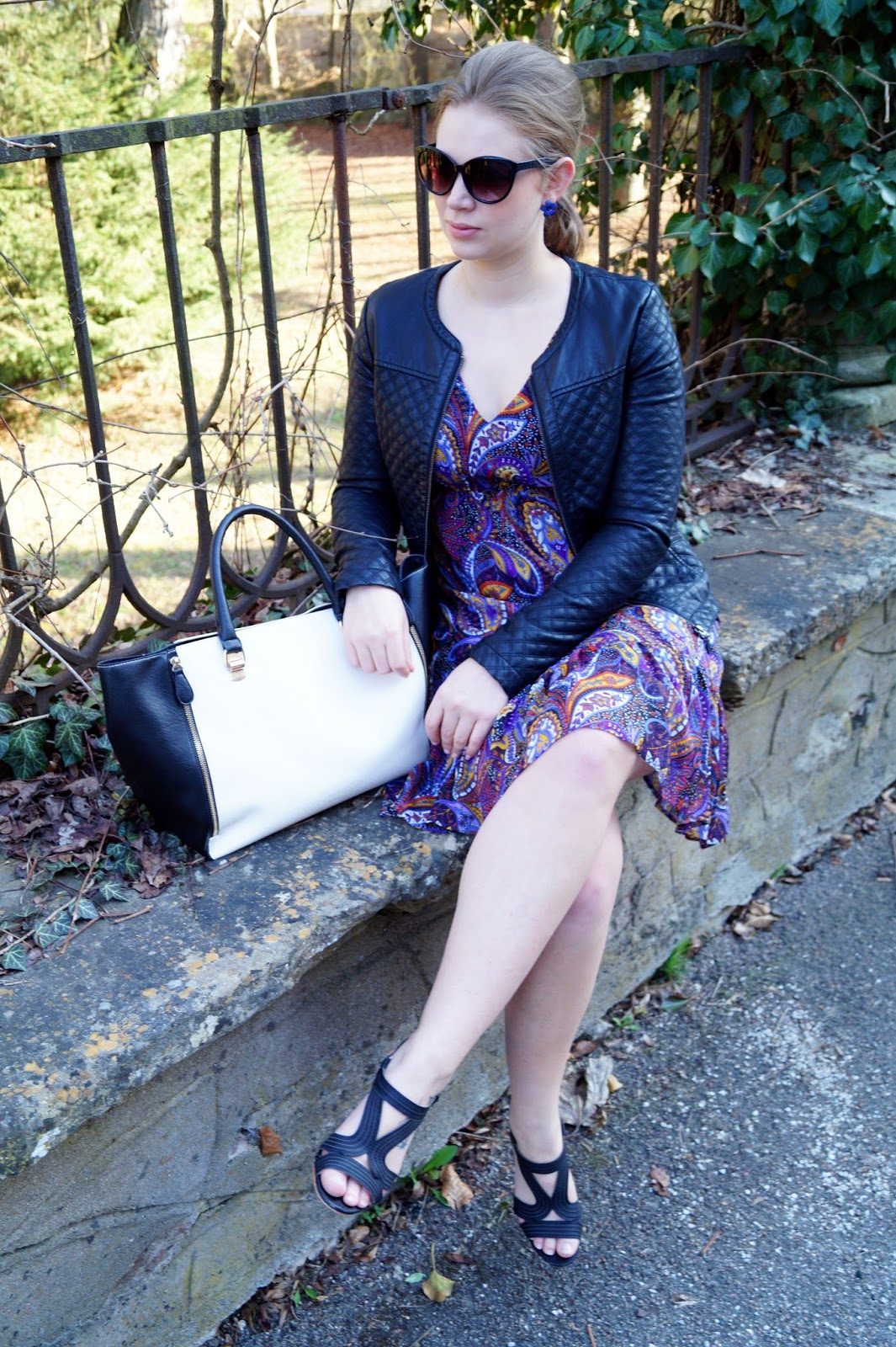 Dress old similar here, here and here / Leather jacket old similar here, here and here / Sandals old similar here, here and here / Sunnies H&M similar here and here / Earrings sixx old similar here
