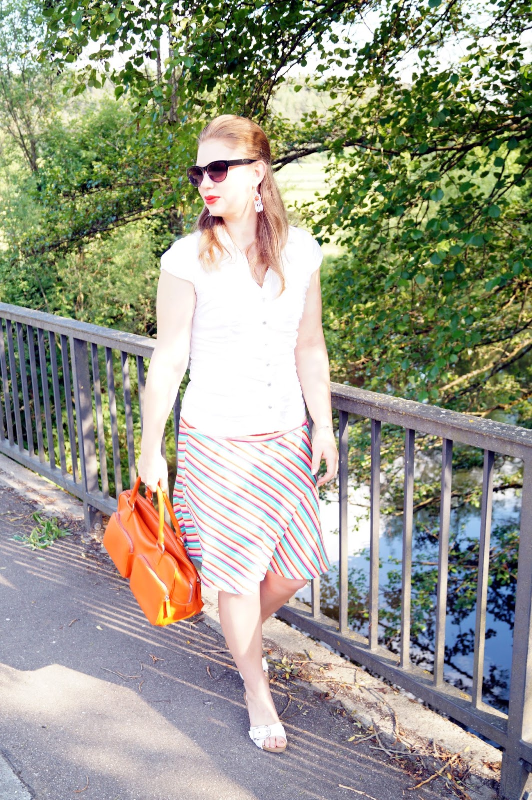sometimes the most colorful pieces are the most versatile. Have a look at this skirt for example. The pattern has so many different colors so you can rewear it with a different color and a different kind of shirt, shoes and bag so often.