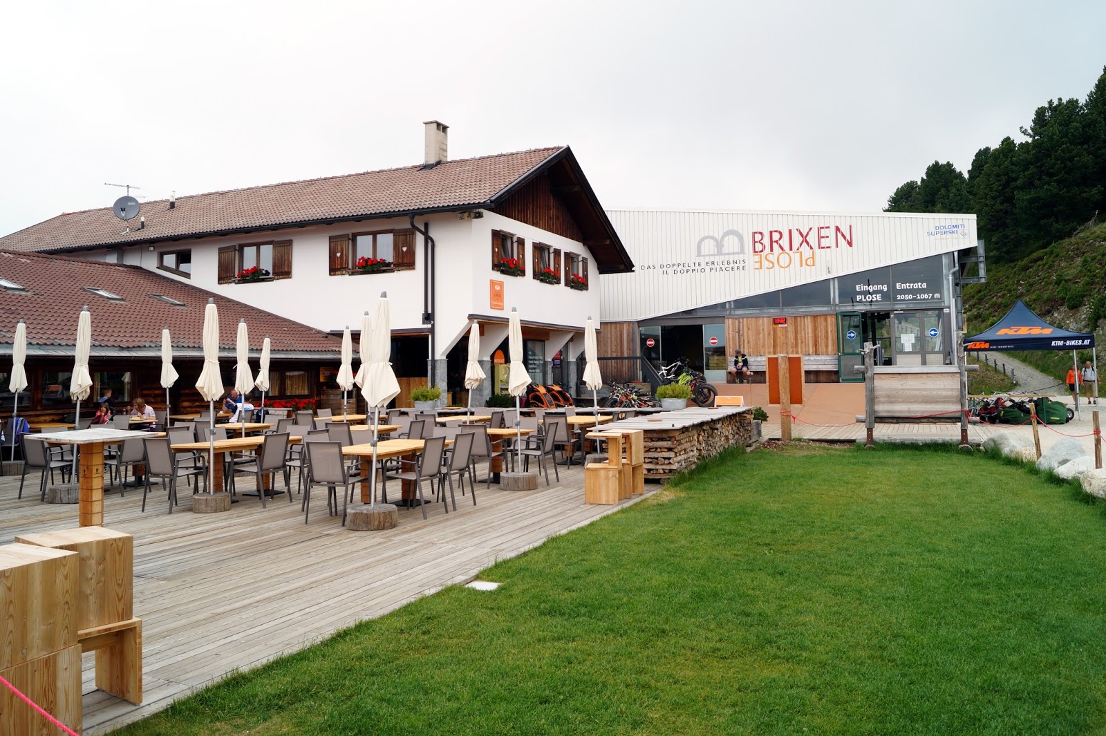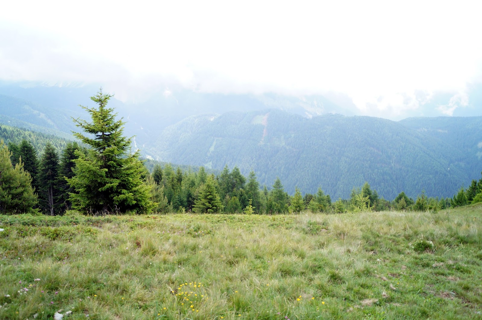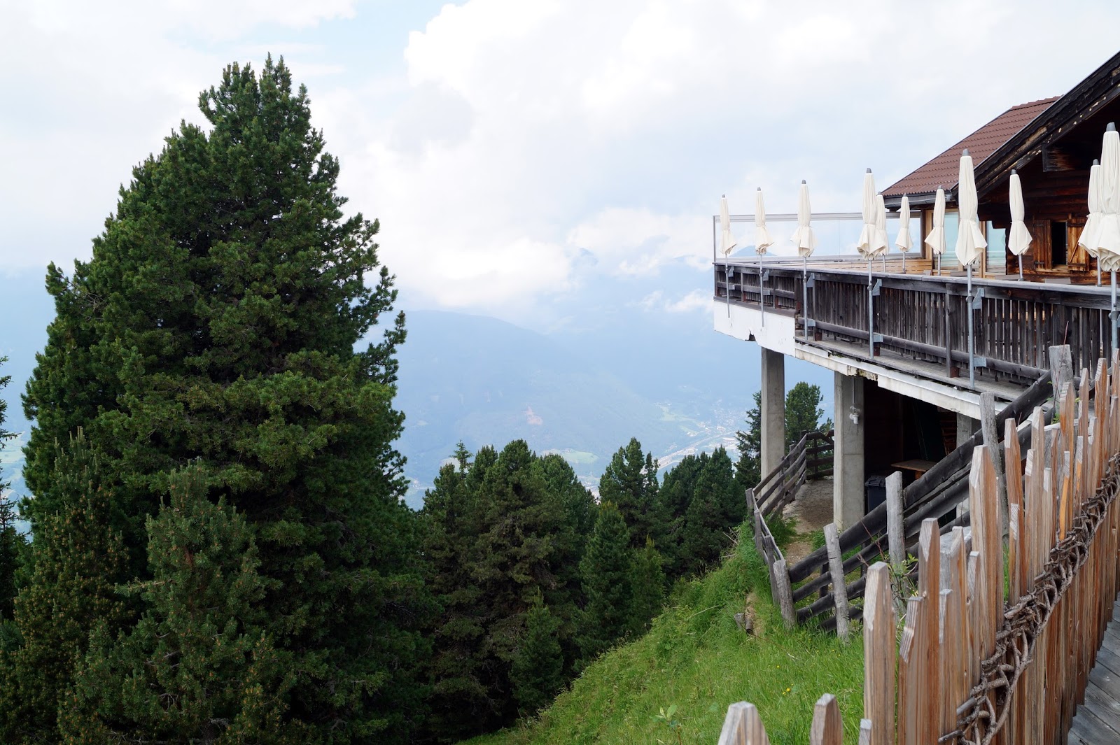 On our second day we decided to go a little outside the city by driving to a mountain called Plose. We took the cable railway to get to the top. Chloe wasn´t amused by the way. After we arrived it was pretty foggy but it cleared up really soon. We went on the trail to take a long walk with Chloe but turned back very soon as she was followed by a big free running cow. So we went to the mountain restaurant, had some coffee and enjoyed the view before taking the cable railway to get back to the car.