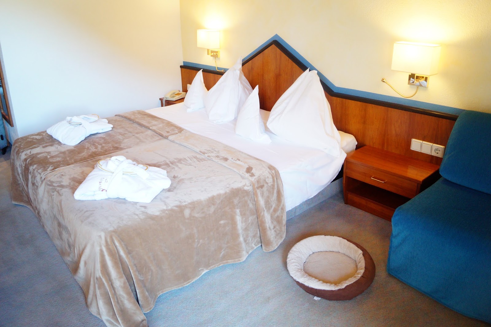 After arriving at our hotel (the Löwenhof Hotel) and checking-in in the afternoon we first had coffee and a panini. Afterwards we went to the room and took a nap before heading to the pool.