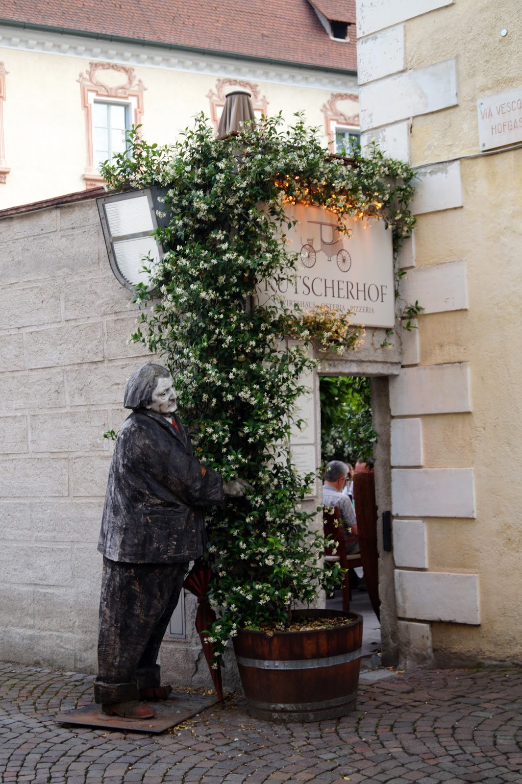 For dinner we went down in the city. We ate at a restaurant called „Torre Biance“ which means white tower – one of the sights in Bressanone.