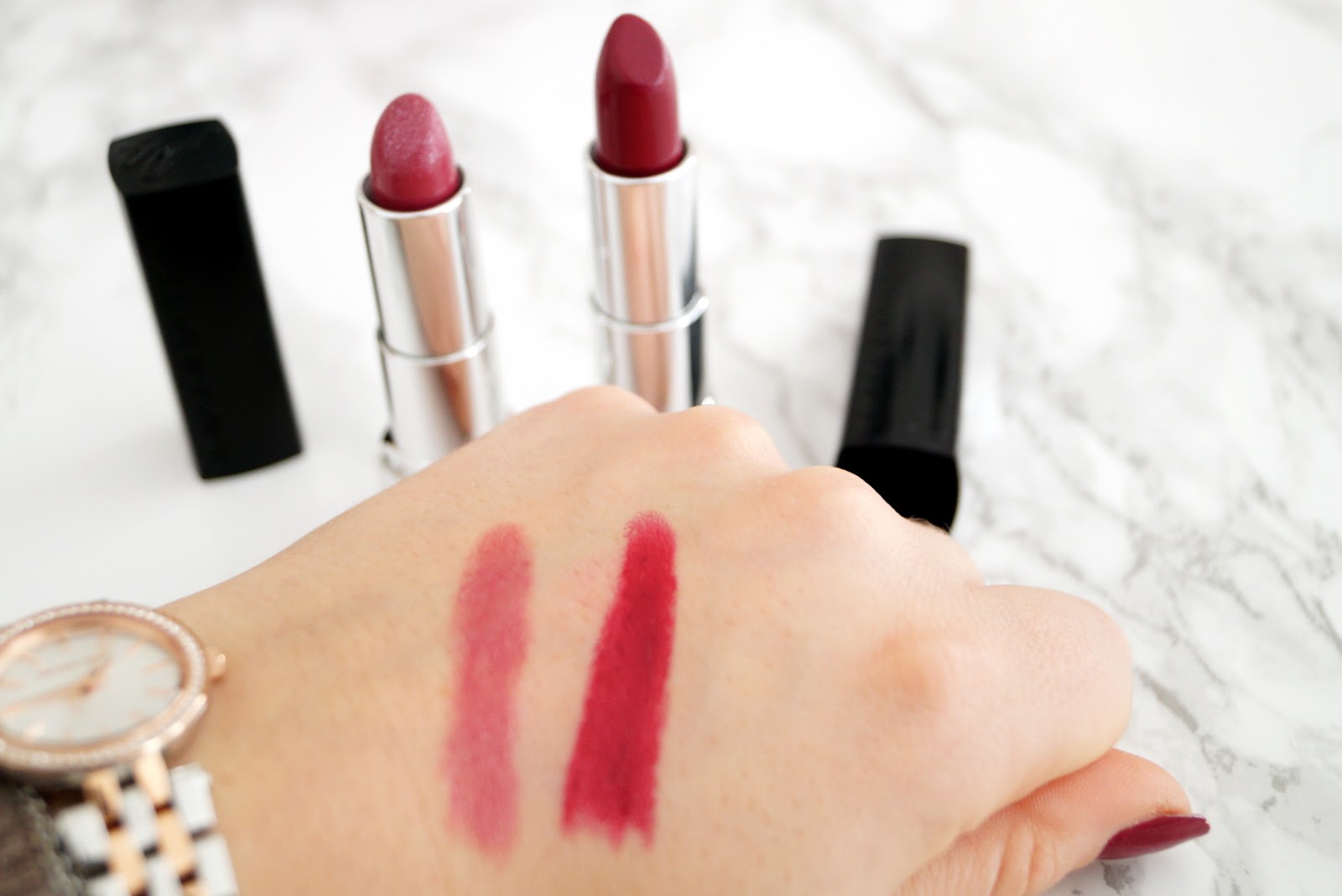 The left one is 900 Crystal Berry and the rigth one is 940 Glam Plum.