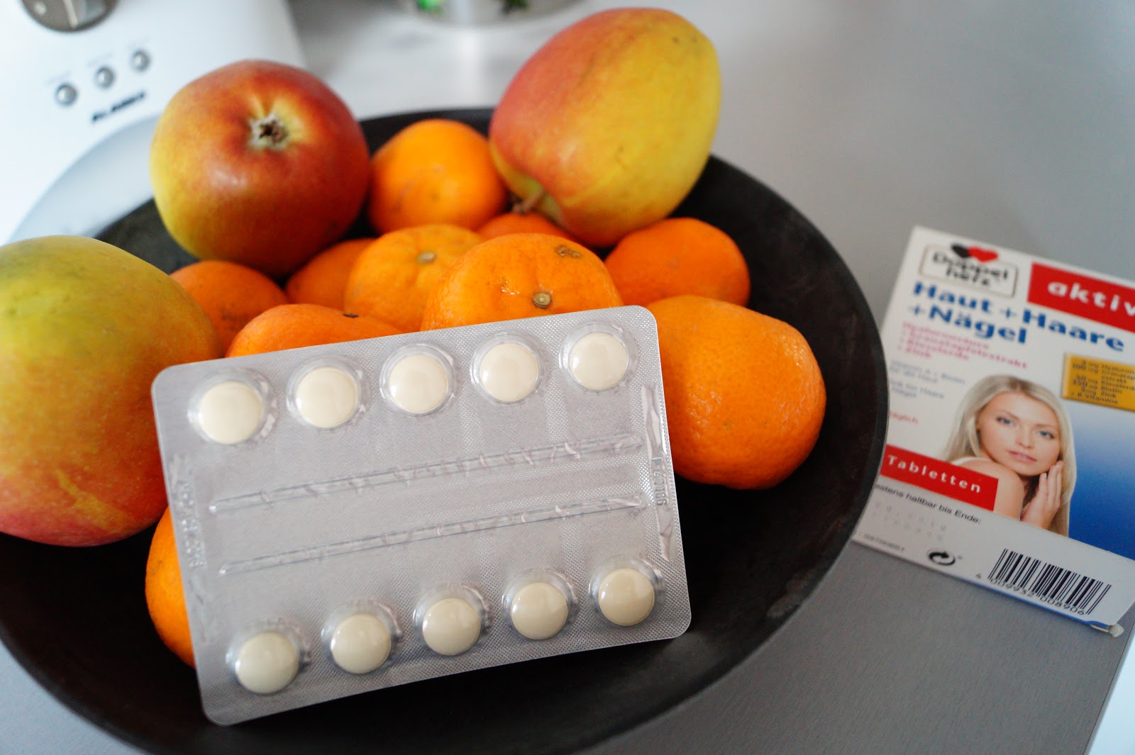 You might have seen in an earlier post that I recommend to take a daily dose of biotin for your skin/hair/nails. I am still doing this (changed the brand cause I wanted a higher dose) with a mix of other vitamins and additives.