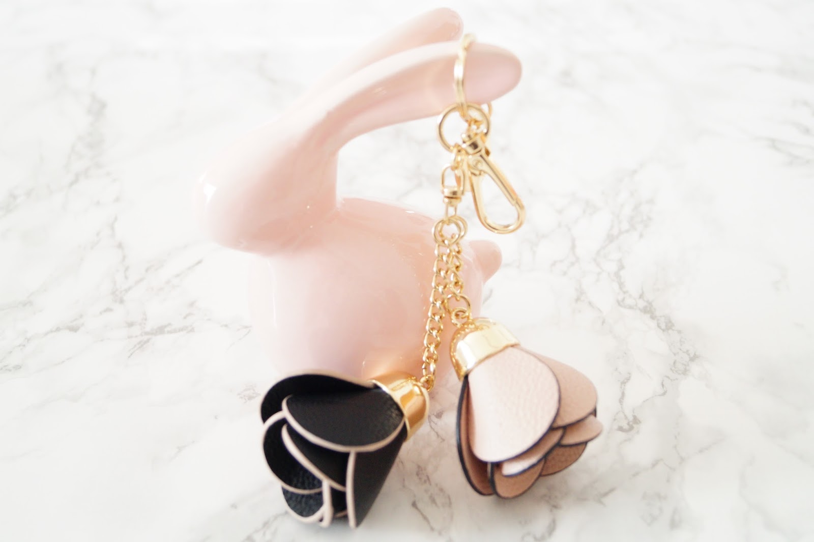 Und weiter gehts mit Frühlingssachen. Diesen Taschenanhänger habe ich bei H&M gefunden. Ich finde er gibt jeder Tasche einen edlen und exklusiven Look wegen der Farbkombination. Der helle roséton geparrt mit dem schwarz und dem gold lässt das ganze etwas teurer aussehen.
