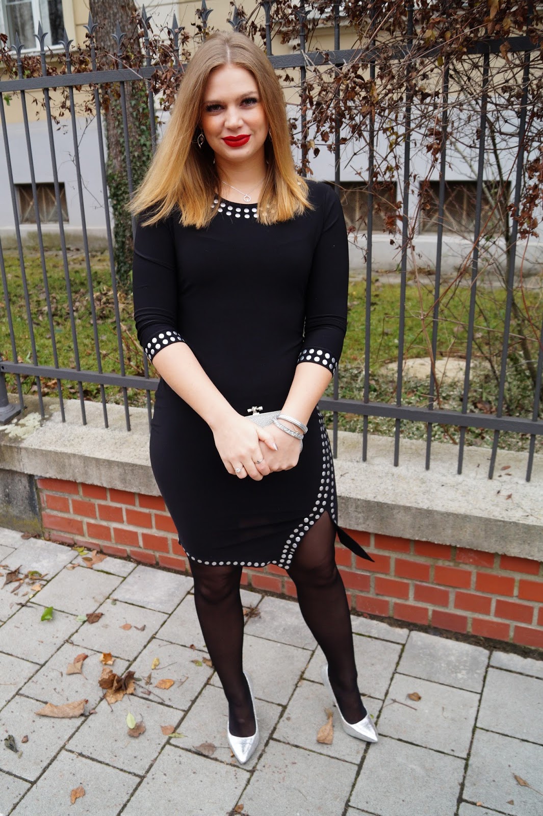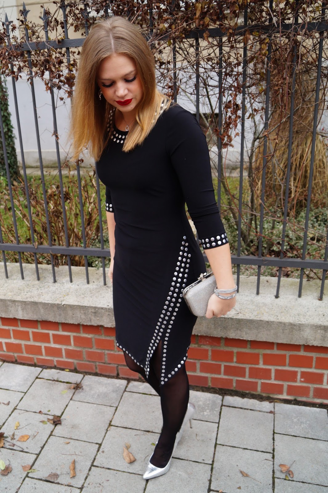 Outfit: What to wear for a New Years Eve party – Studded black dress / silver heels