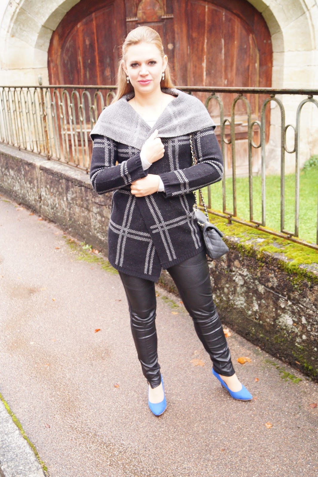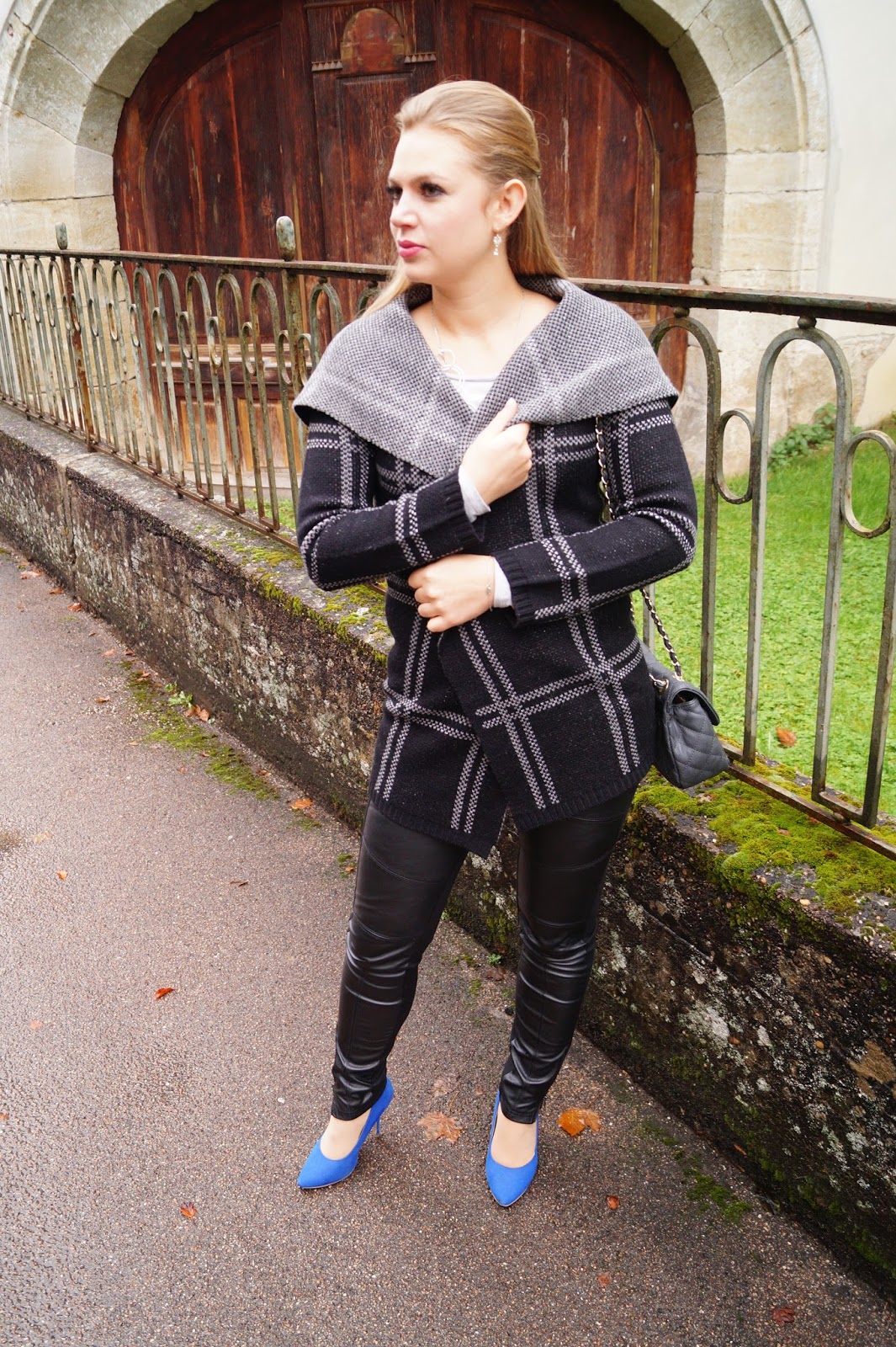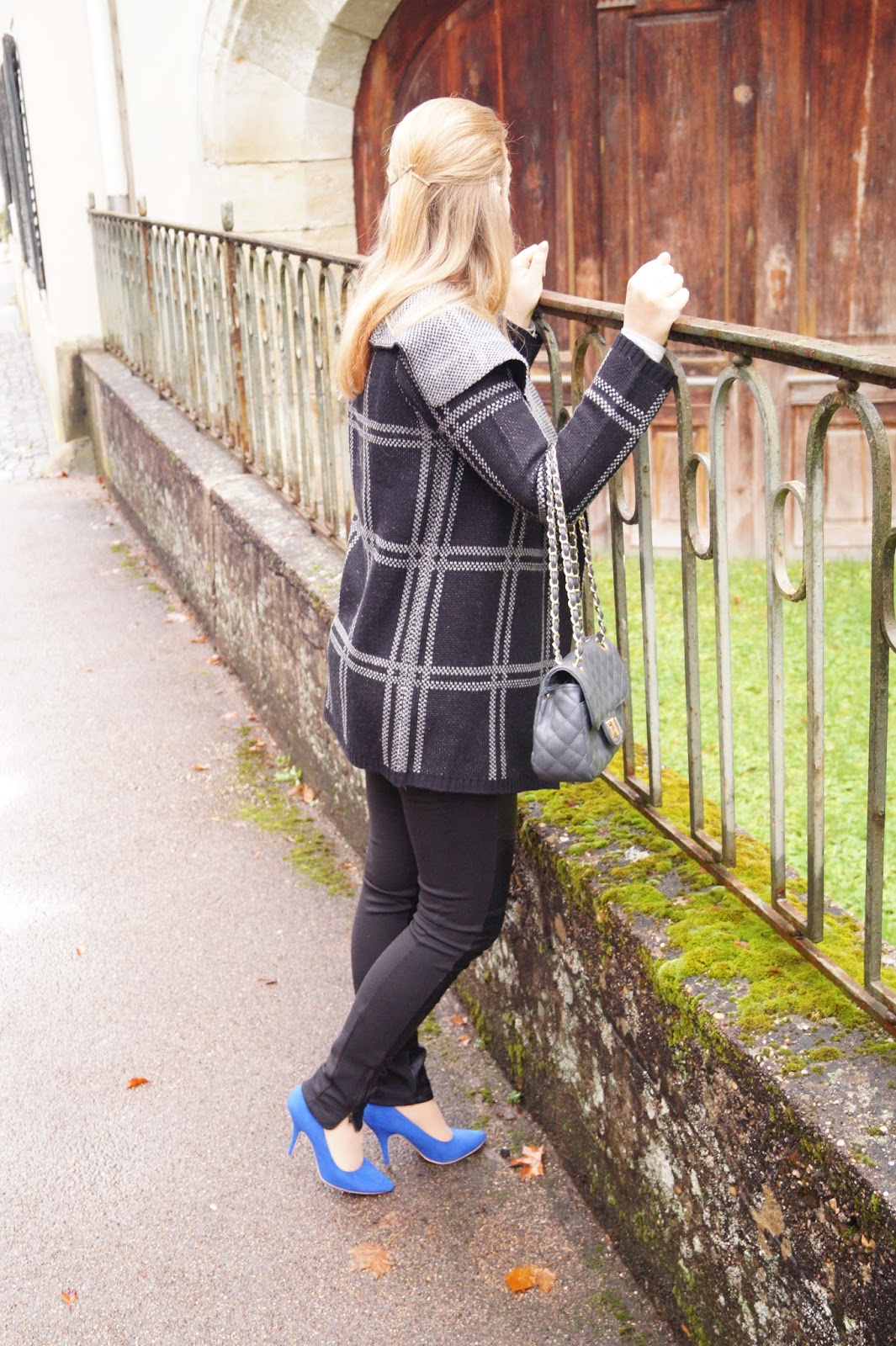 todays outfit is all about the coat. I like those kinds of coats a lot. It is made of wool and it is perfect for fall cause it is so cozy and warm. It is also perfect to transit into the Winter months cause you can easily wear it under a jacket and as it is silver and black you can combine poppy colors to it. I added some color with those bright blue pointed heels.