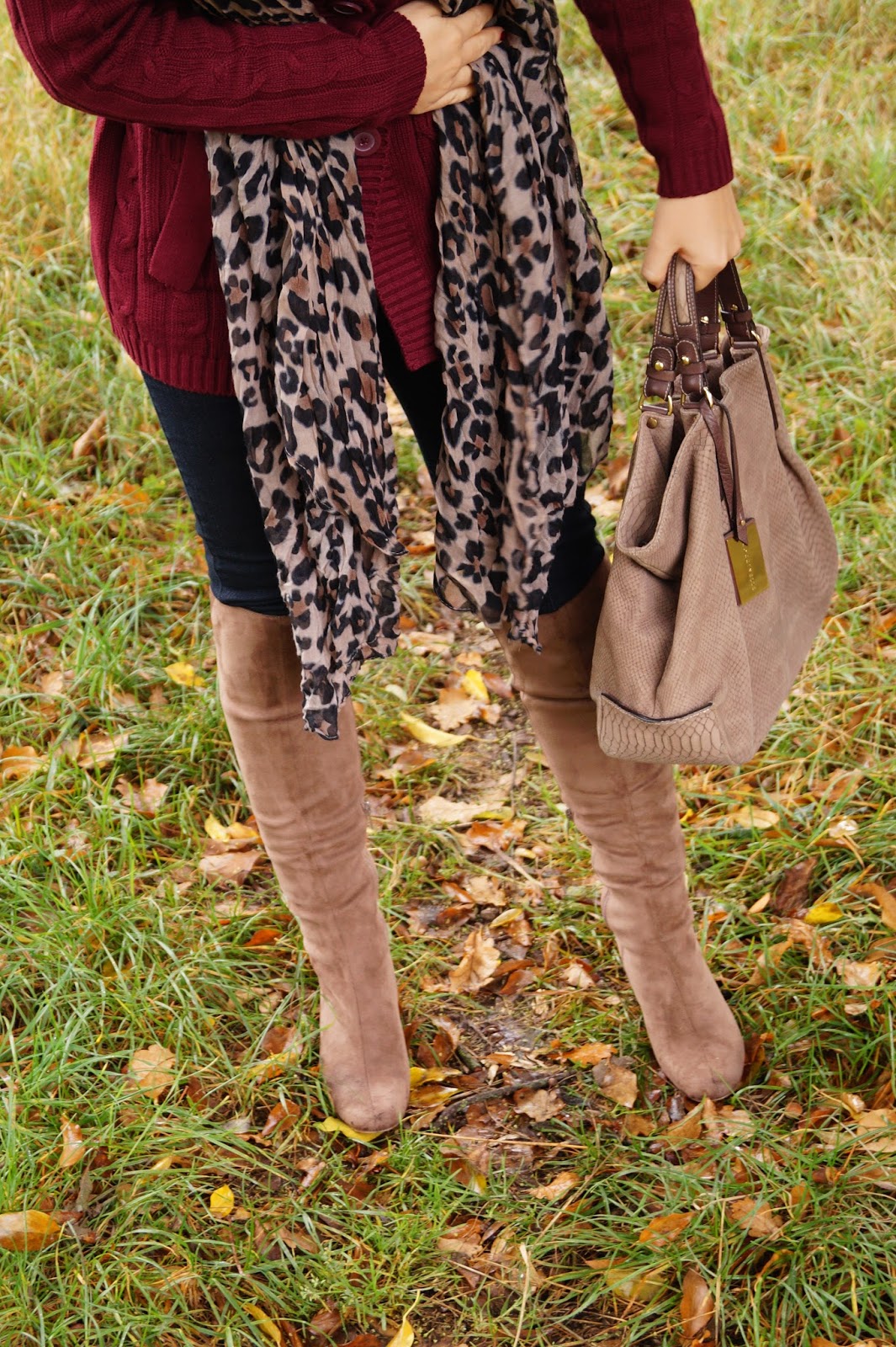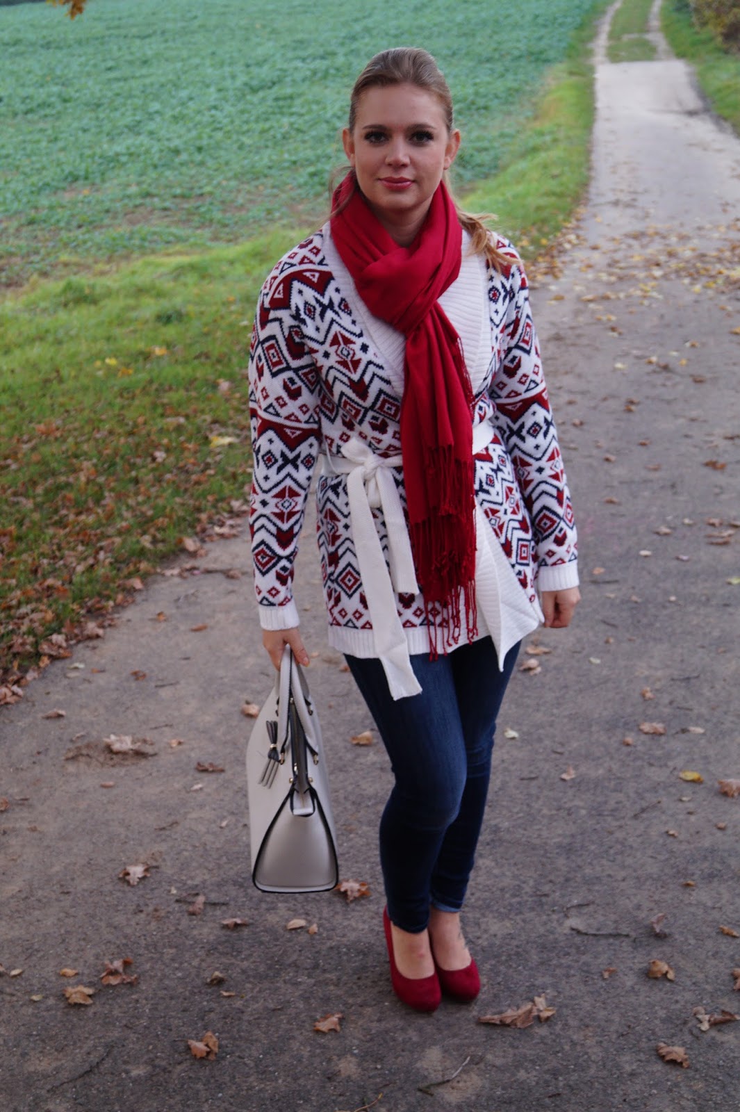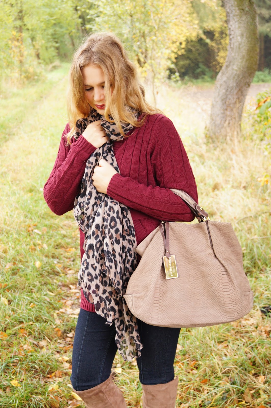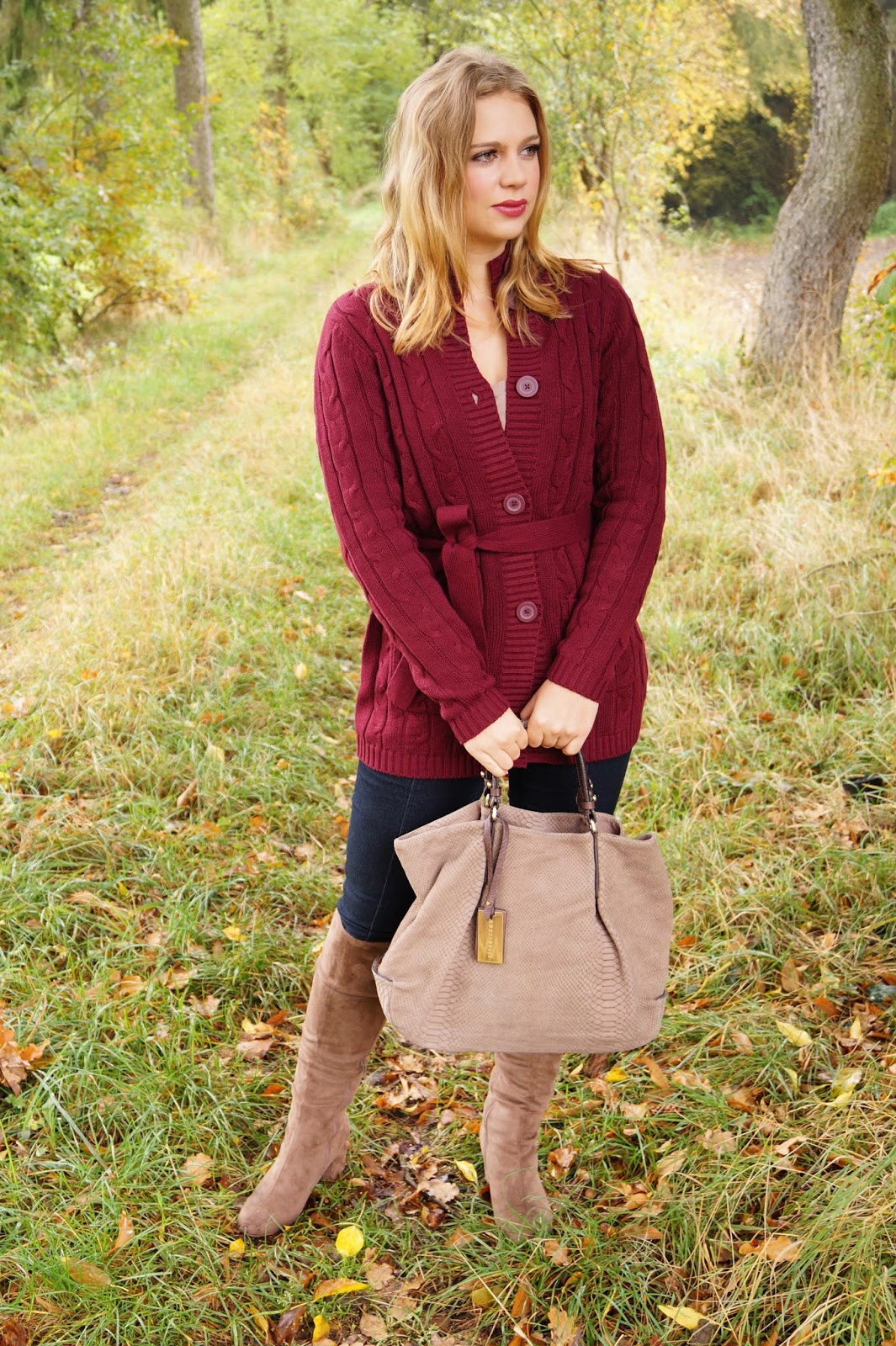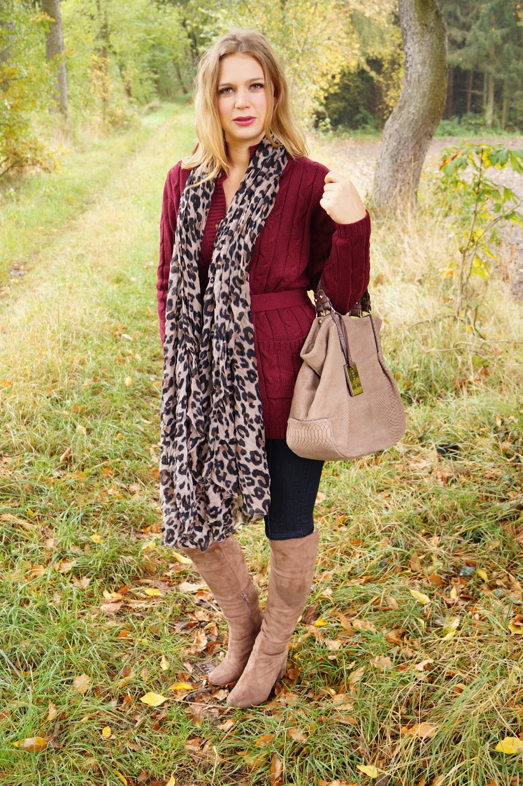 I had been into pullover lately but now I found this super pretty longcardigan in this nice plumy shade (in which I have a matching lipstick from Manhattan too ^^ ). I just love everthing about this cardigan – the color, the neckline, the length, the knitted pattern and of course the price. It is a steal for under 30 Euros. I paired it with a pair of jeans leggins and those brown over the knee boots from Mark Adam which are currently on sale for about 60 Euros. They are just great for the winter month. They have a chunky and not so high heel so you won´t slip away when it is freezing outside and the color matches perfectly with lots of fall and winter colors.