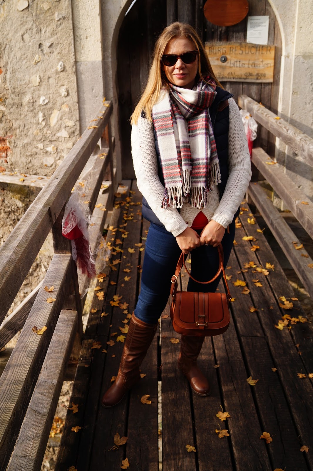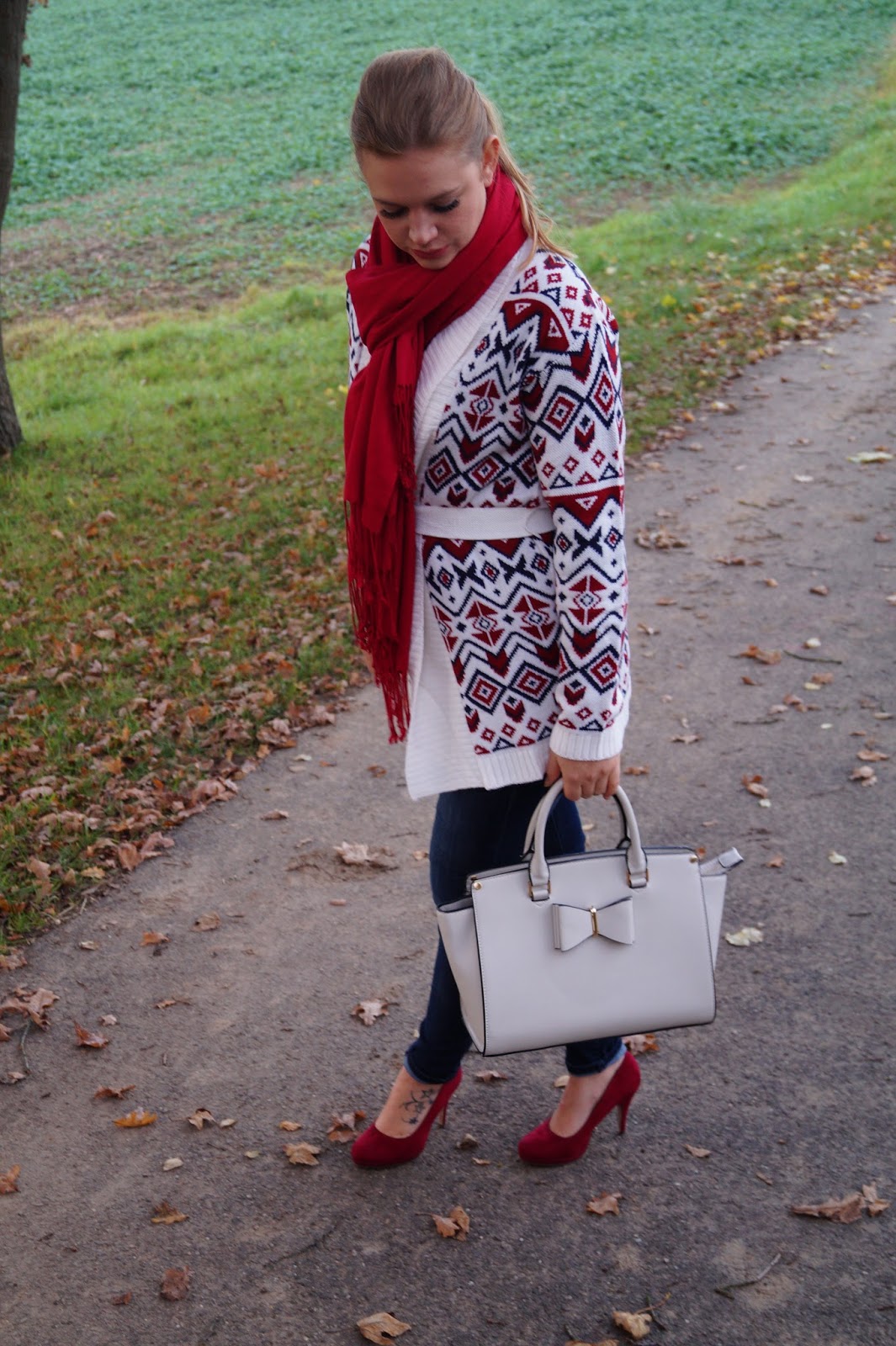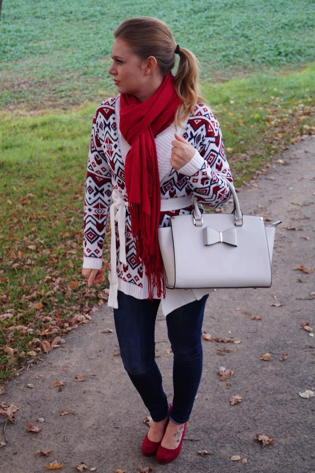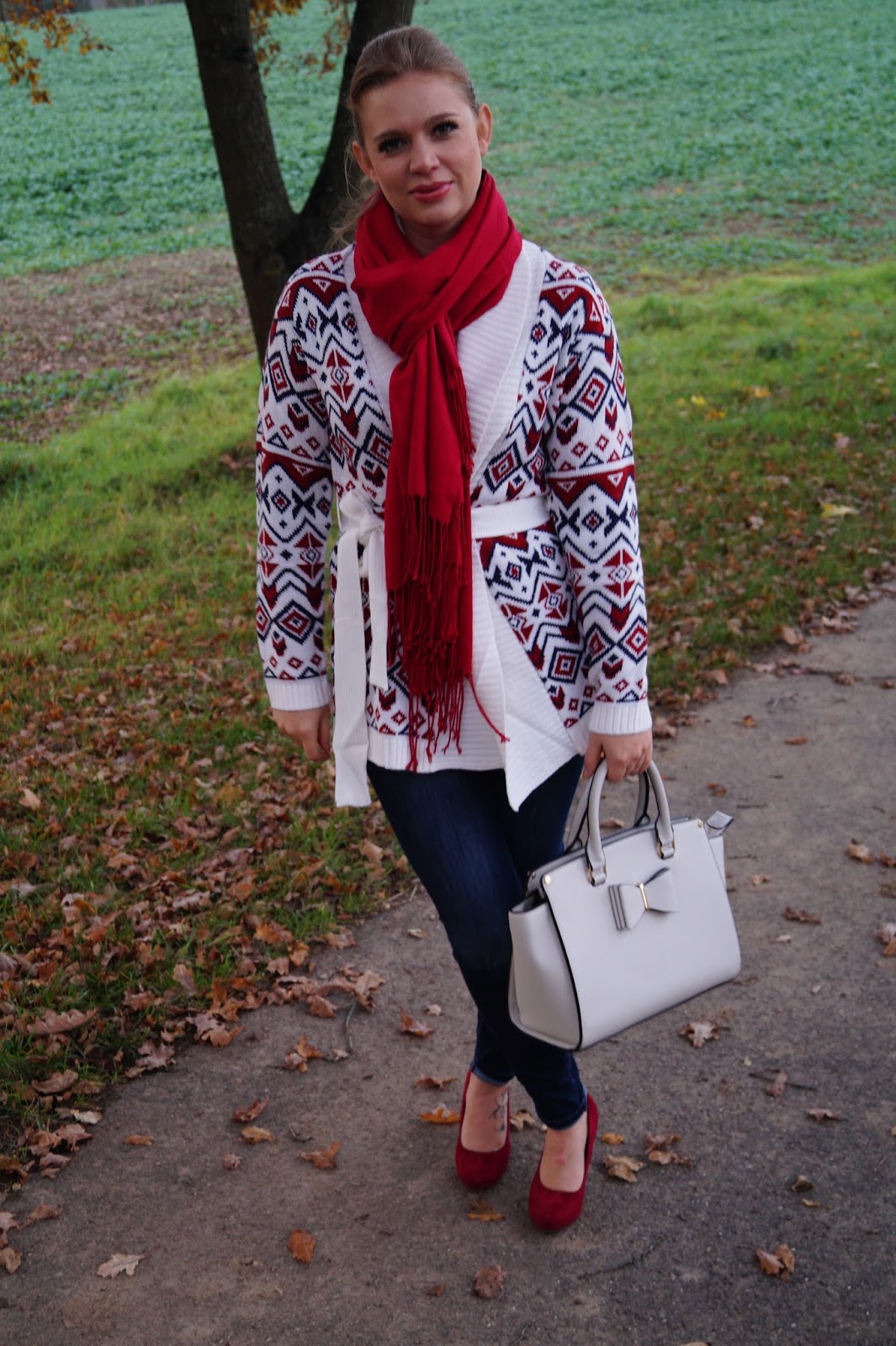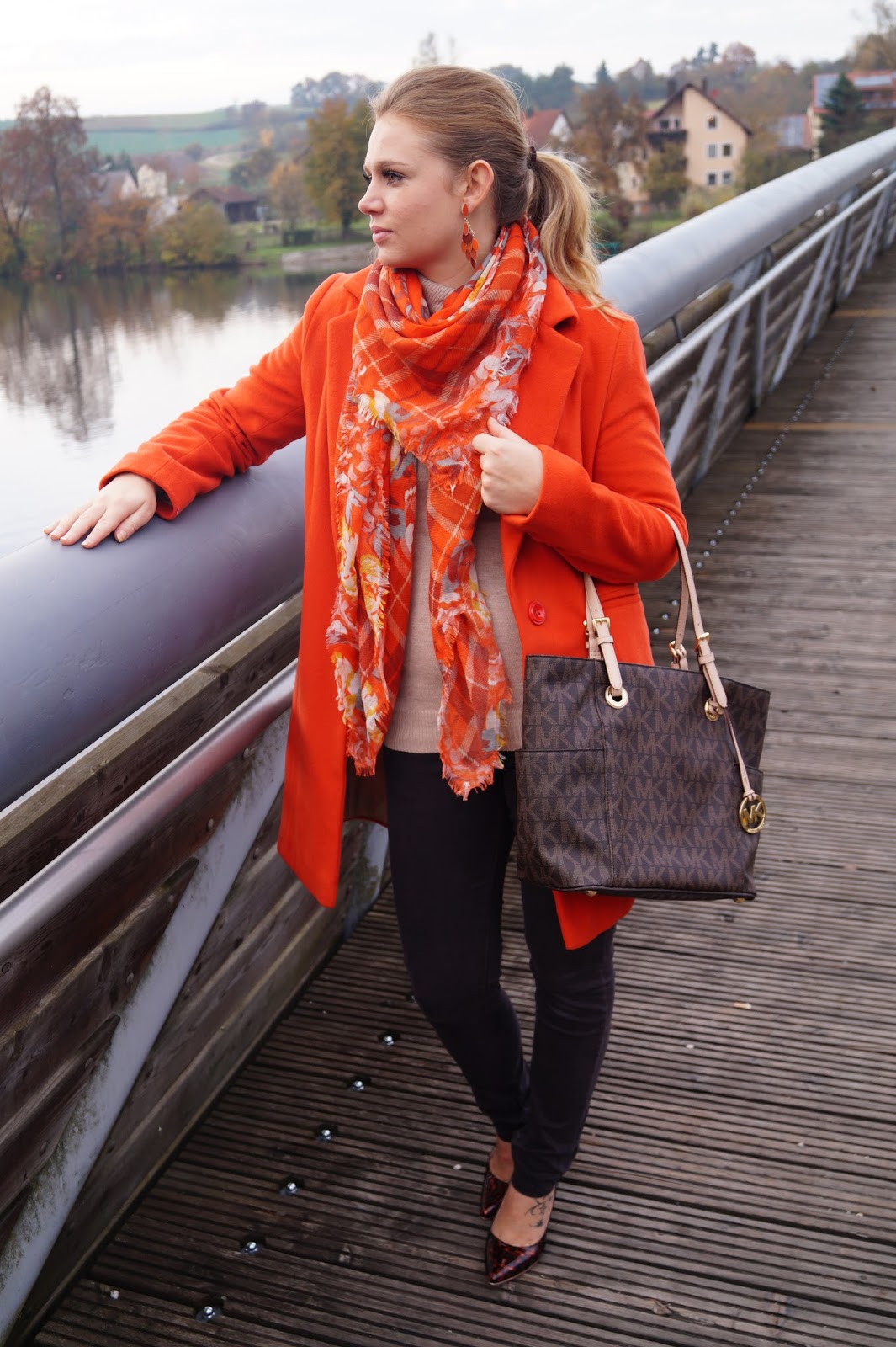 I had been into pullover lately but now I found this super pretty longcardigan in this nice plumy shade (in which I have a matching lipstick from Manhattan too ^^ ). I just love everthing about this cardigan – the color, the neckline, the length, the knitted pattern and of course the price. It is a steal for under 30 Euros. I paired it with a pair of jeans leggins and those brown over the knee boots from Mark Adam which are currently on sale for about 60 Euros. They are just great for the winter month. They have a chunky and not so high heel so you won´t slip away when it is freezing outside and the color matches perfectly with lots of fall and winter colors.