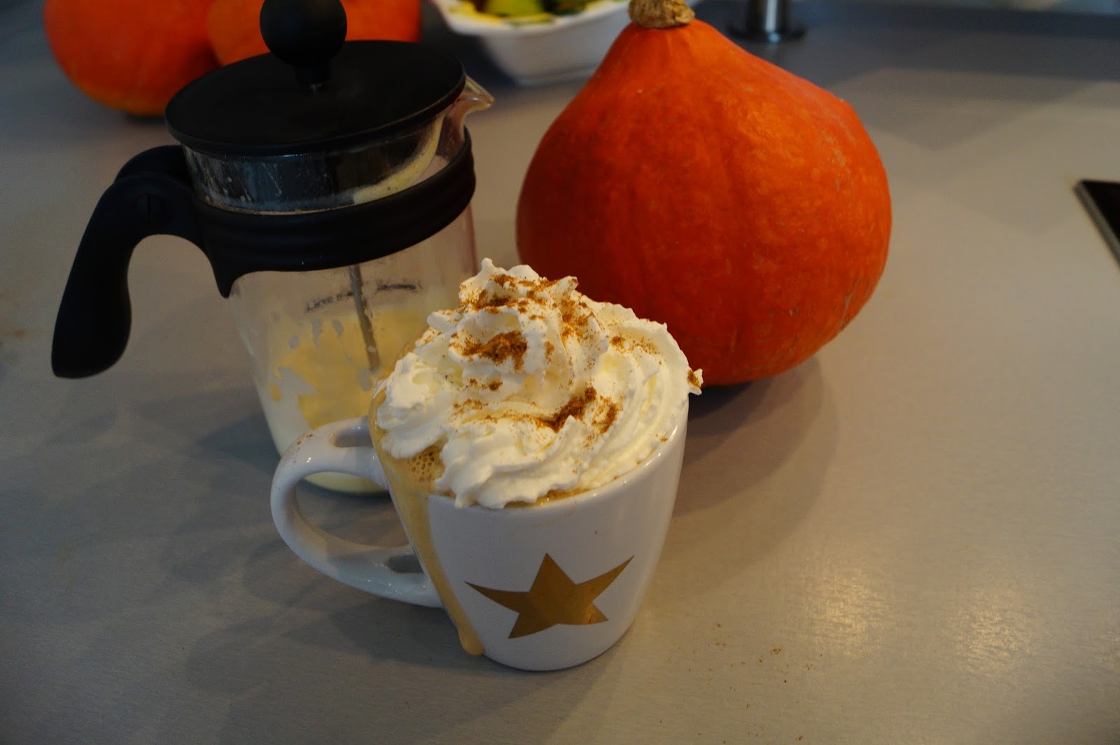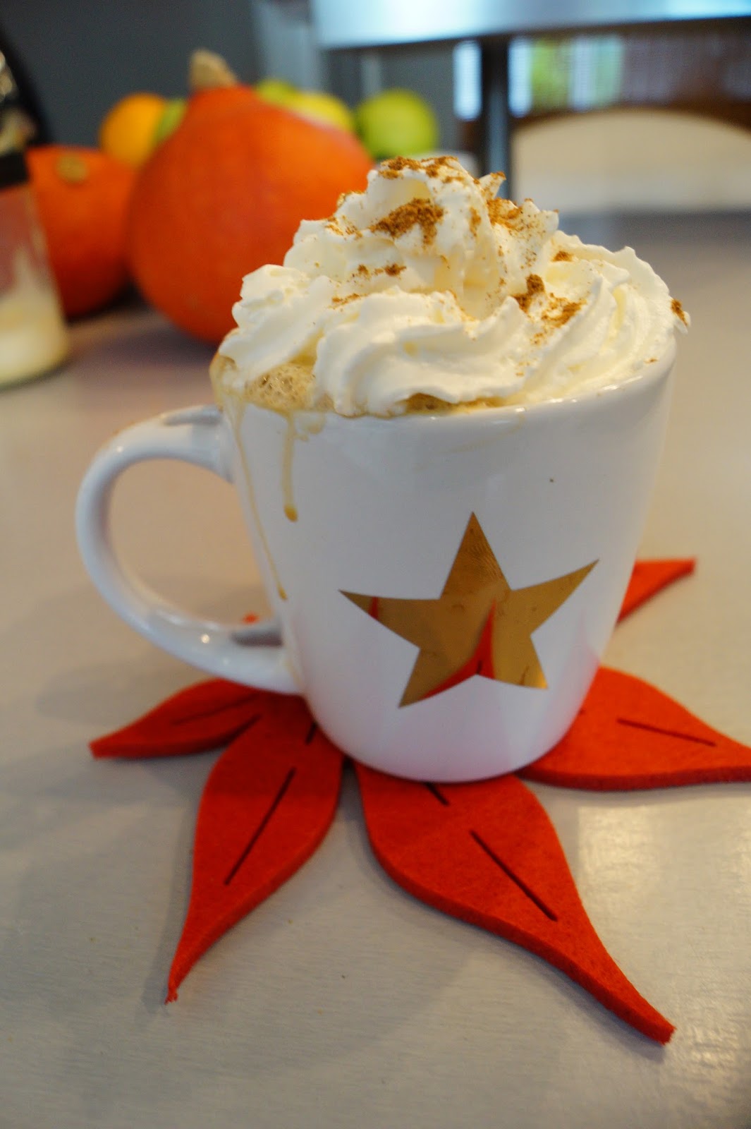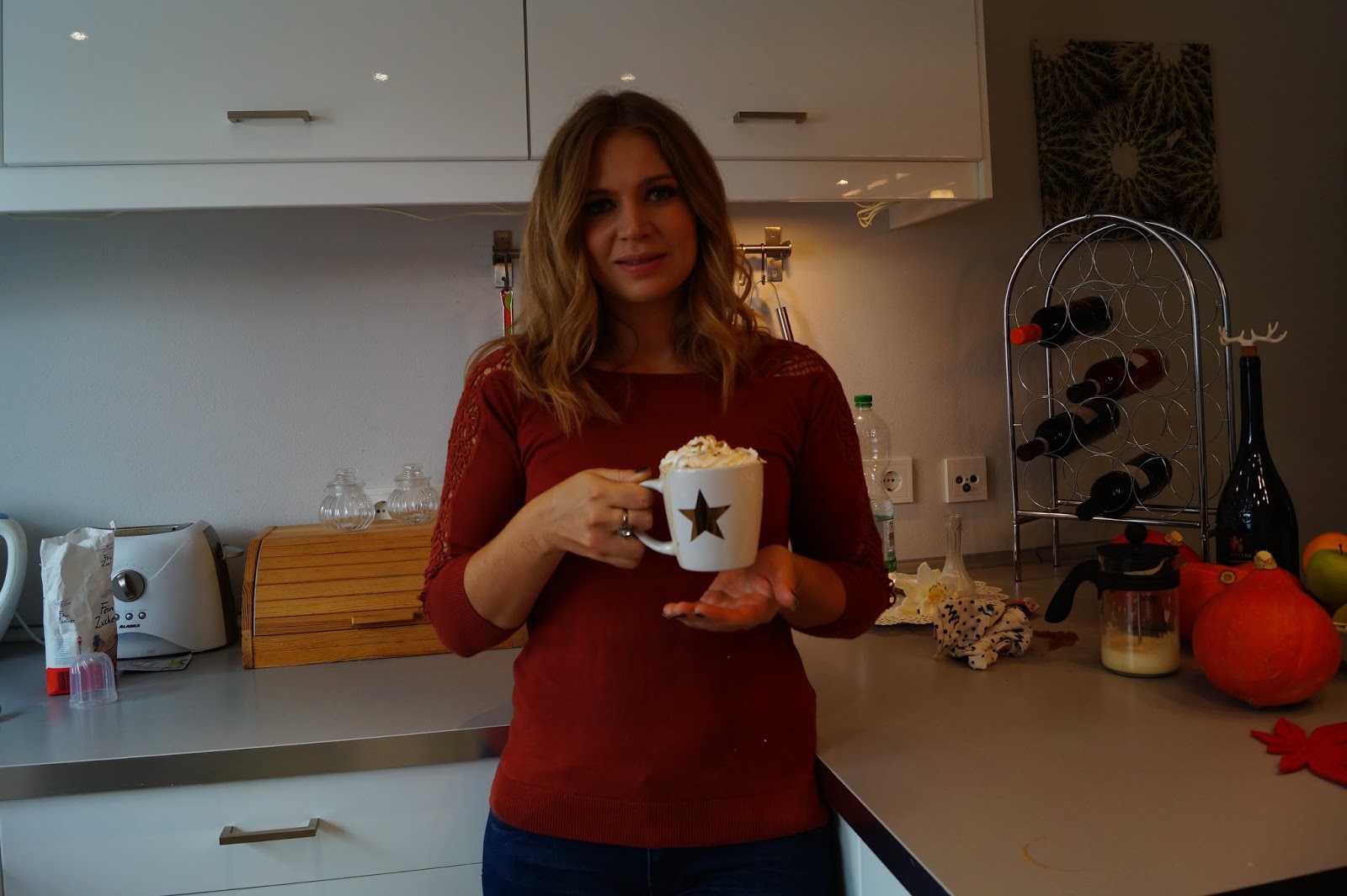 on off the sadest things (or maybe the only one) about fall is that I just can´t get out and get one of those delicious Pumpkin Spice Lattes which belong to fall season like booties and knitted cardigans, cause the nearest Starbucks is about 45 minutes away. This is why I tried out a few recipes to make my own yummy fall drink and this one is the closest to the original so here we go….