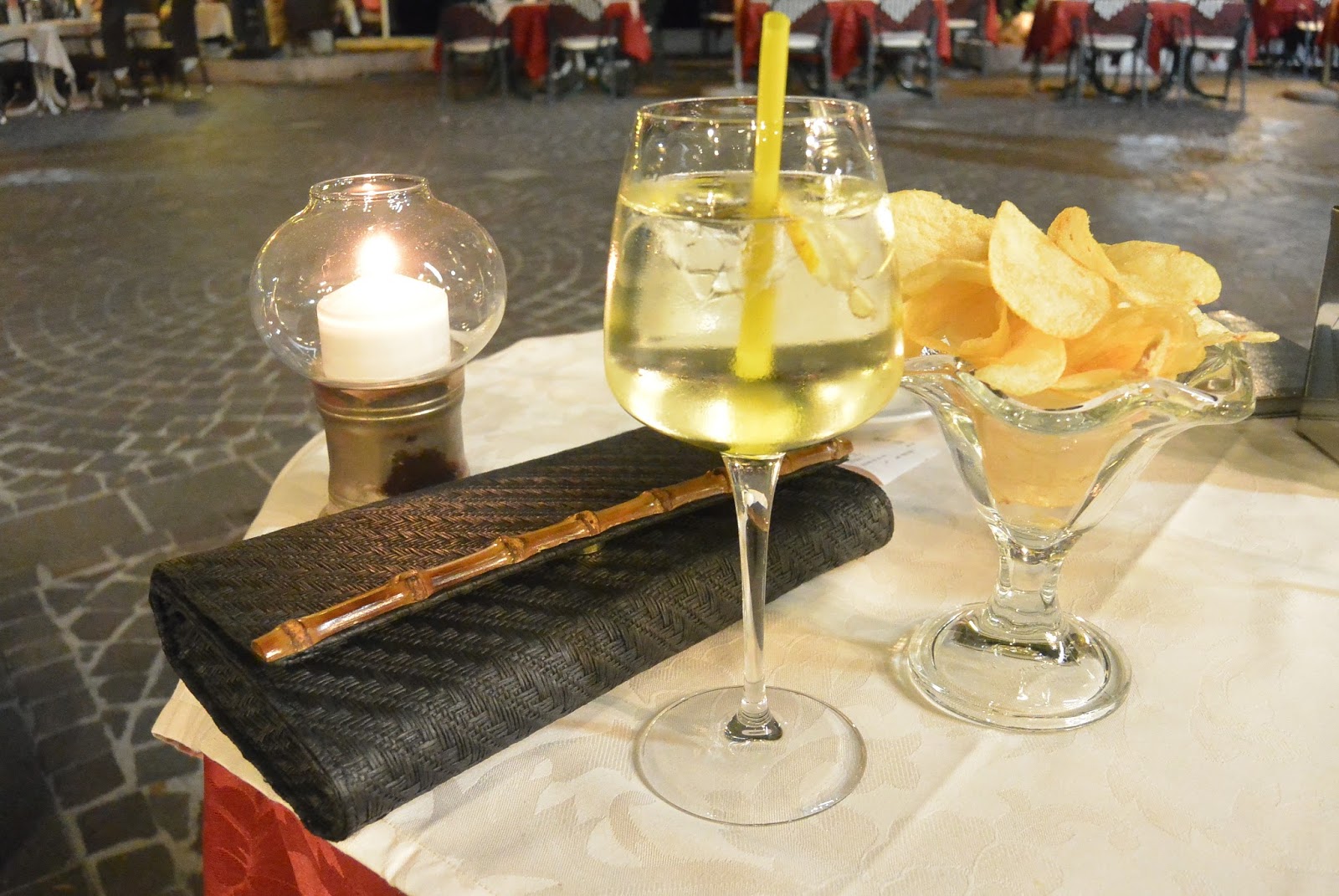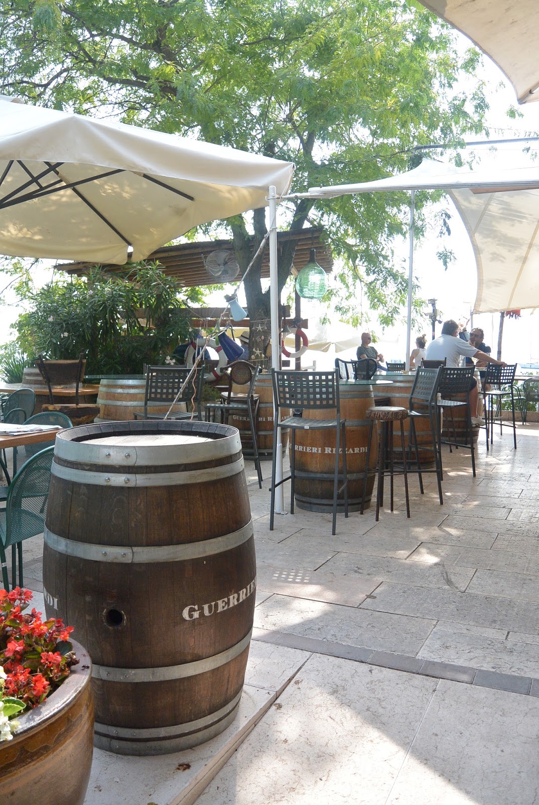 We arrived at Lunchtime and after walking arround in the hotel we went outside the next restaurant we could find to grab something to eat and get a drink in the sun. We found a great place which I called the „Barrel Bar“ – in Bardolino – because all the tables were barrels. We stayed there quite a while. After getting ready for the evening we went to Garda.