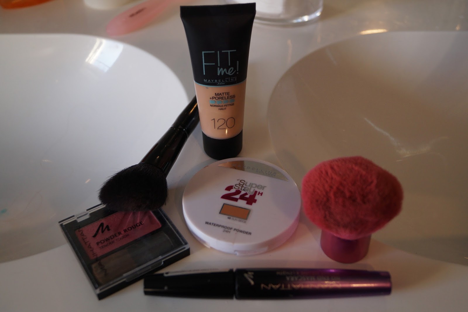 I usually do not wear make-up on purpose. If am going later on the day there might be some left on my face (oops). Maybe some matte powder or just a bronzer.