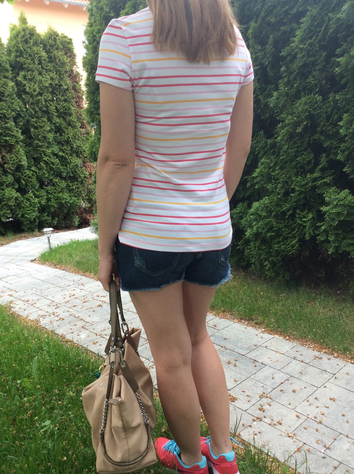This had been a lazy and hot sunday afternoon. We just went out for some pizza. I paired those nice pair of black short with a black and cream striped shirt and my favorite flat sandals. They look like they where from the roman empire. đ