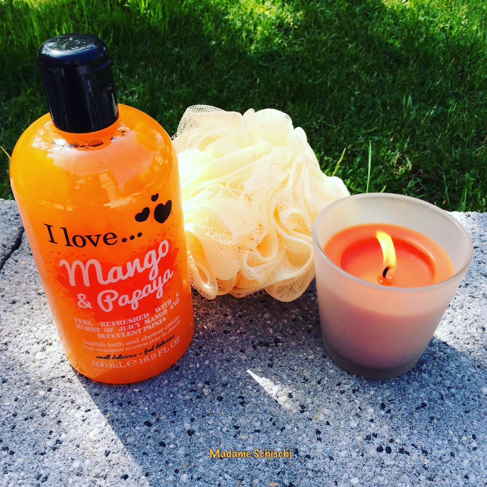 I purchased the Mango and Papaya one cause I had a gift box with lot of their products for my mom for mothers day and I totally loved the smell of this one – this is how summer smells for me – so I went for it.
