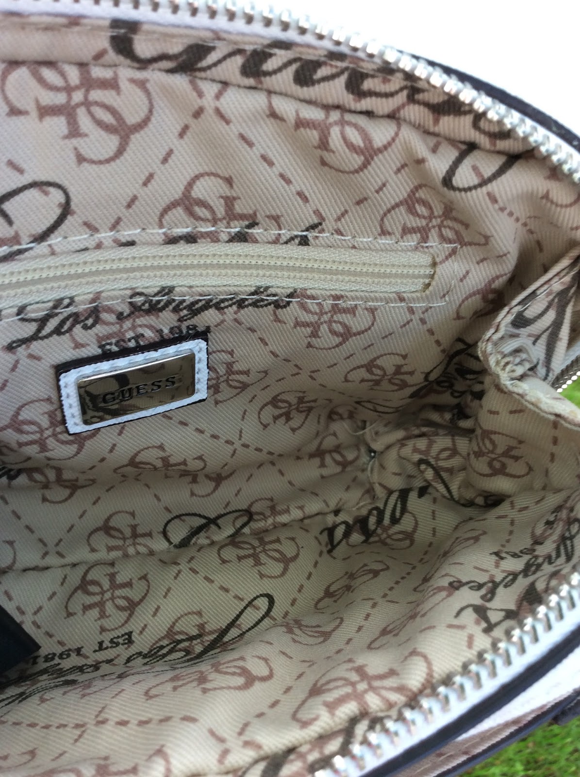The color is a real bright white. The lining has the typical guess logo all over. And it super soft inside and outside. I really do love it (wanted to wear it the first time on my vacation but I couldn´t resist this cutie).