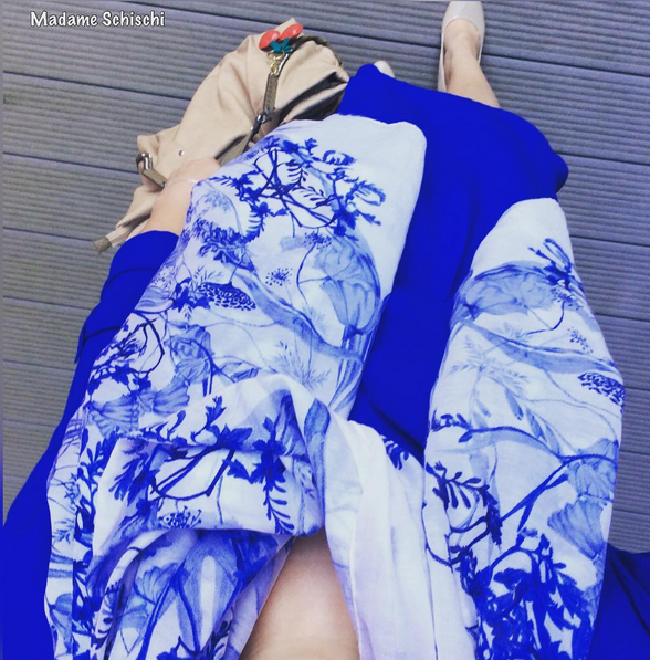 The last outfit pic I am showing you for this round-up is this dress in this bright and awesome cobalt blue. Got this one from the last H&M midseason sale and it is adorable. Is is so light and comfortable and the color is so nice for spring. I paired it with a scarf from Topshop. I like this scarf a lot cause of the pattern. It looks like an old chinese ming vase.