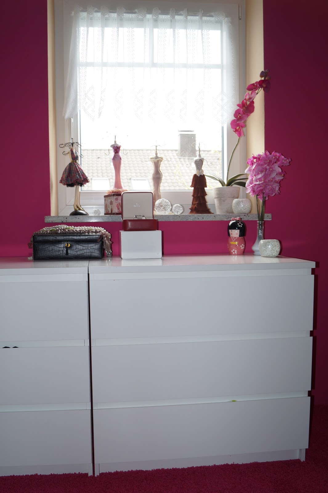 The dress is a colorblocking one. It has this light rose color on the top and a dark burgundy color for the bottom. The collar is also made really nice but unfortunately you can´t see it in this pic.