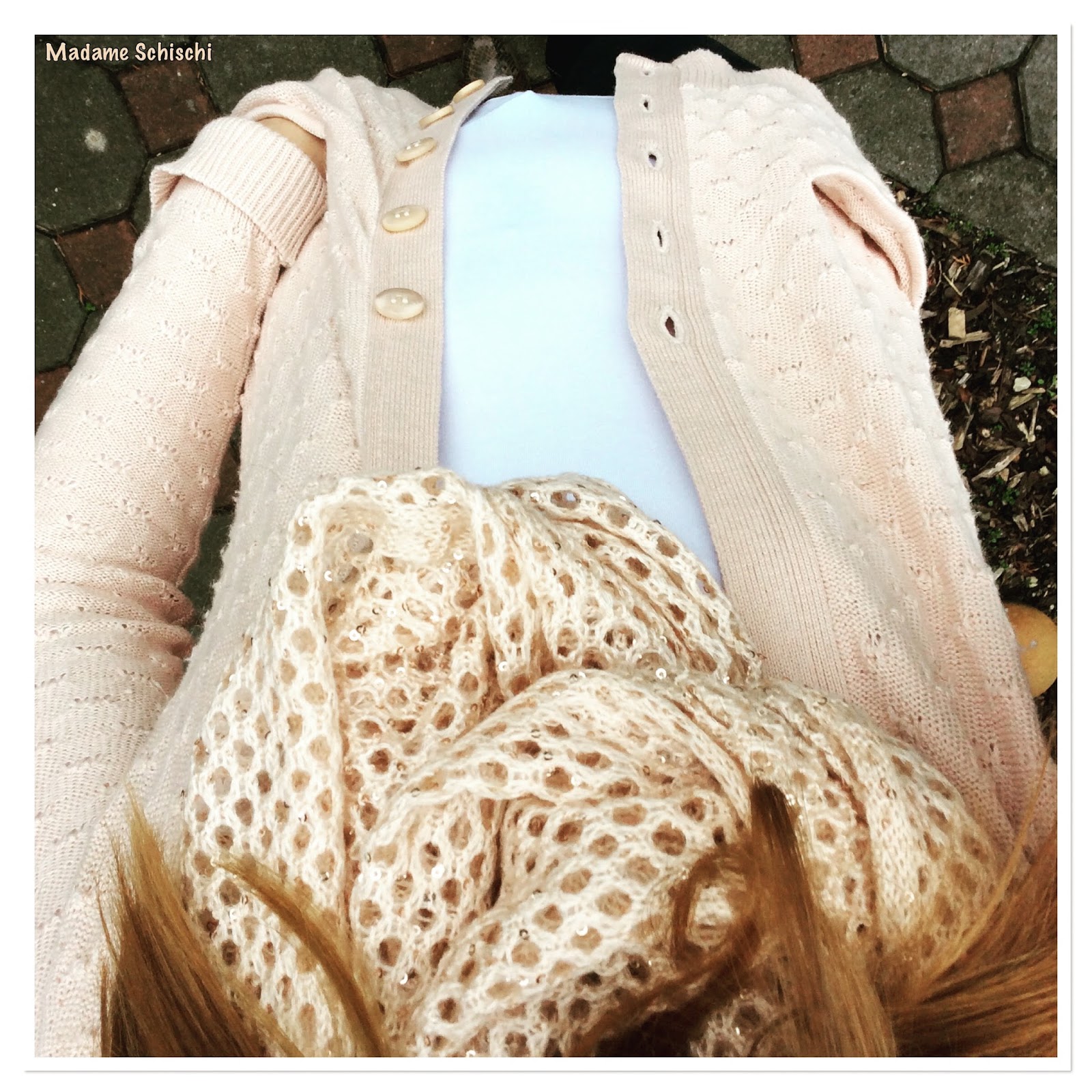 strawberry knit cardigan. I paired it with a wool scarf and the