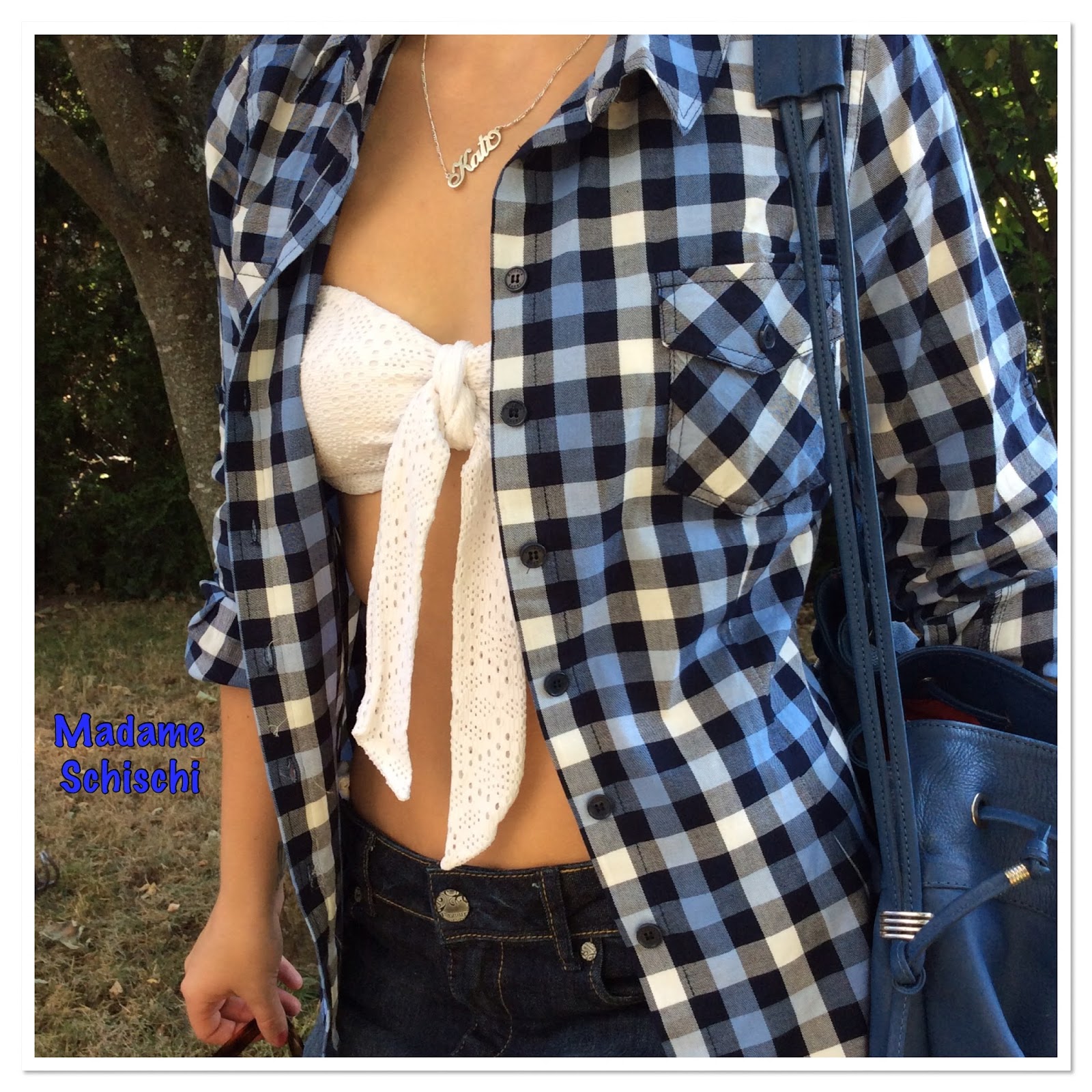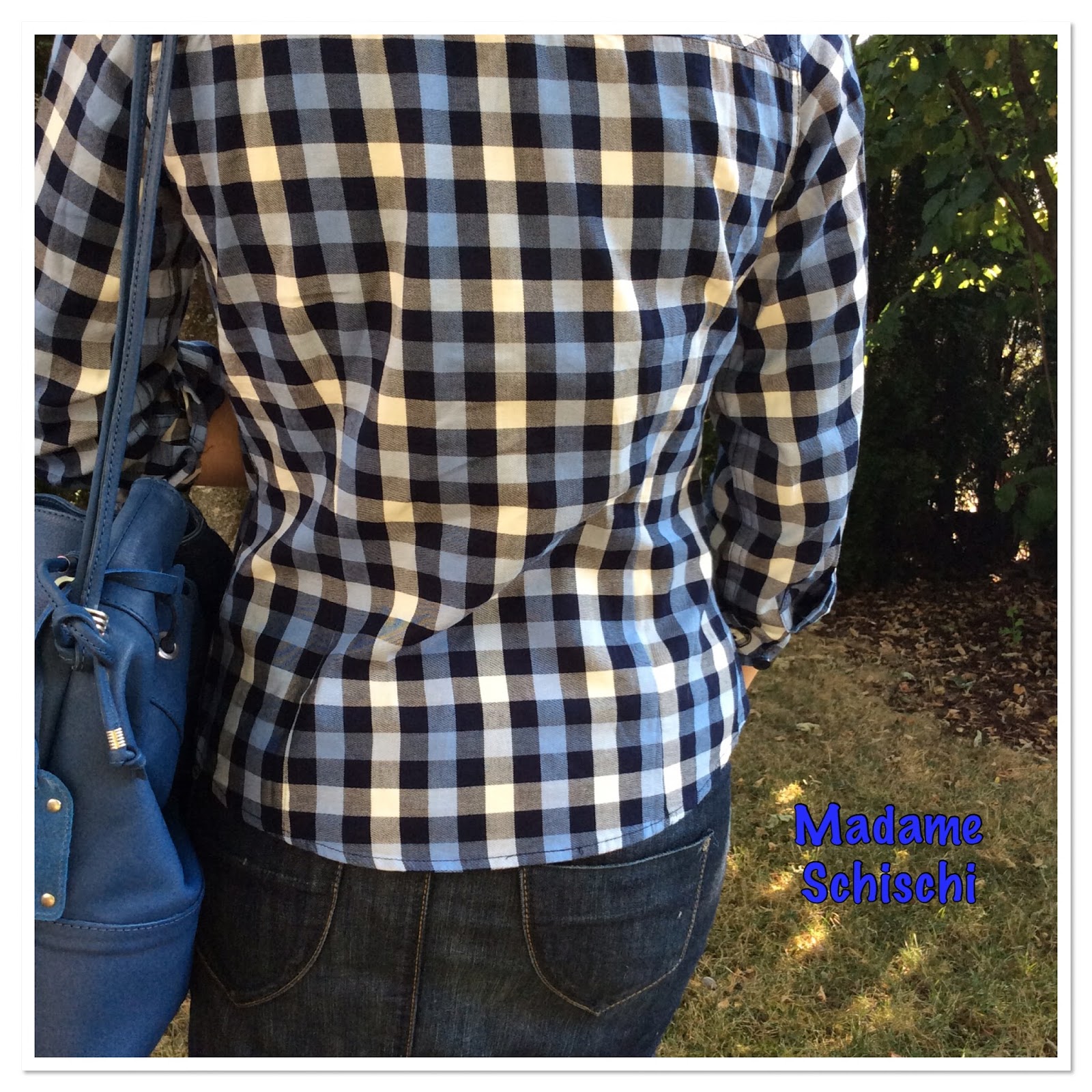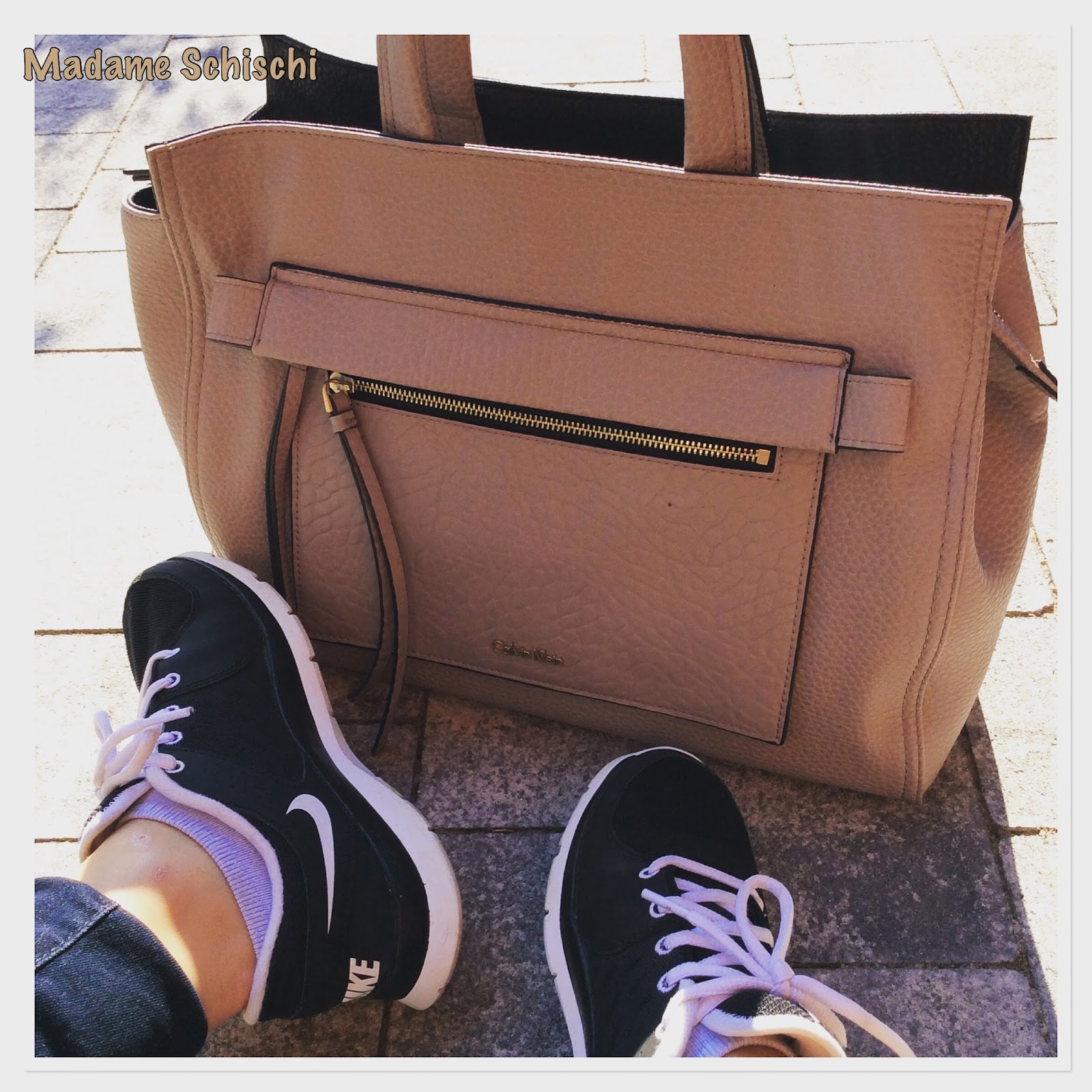 I had worn this last sunday for a garden party. The jeans are H&M super skinny and super low and very dark. My favorite pants at the moment. The shopper is Calvin Klein from their fall collection. The color is a light grey plummy beige. Can´t tell you better – sorry.