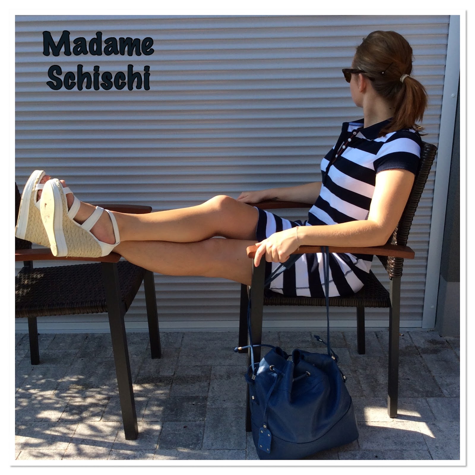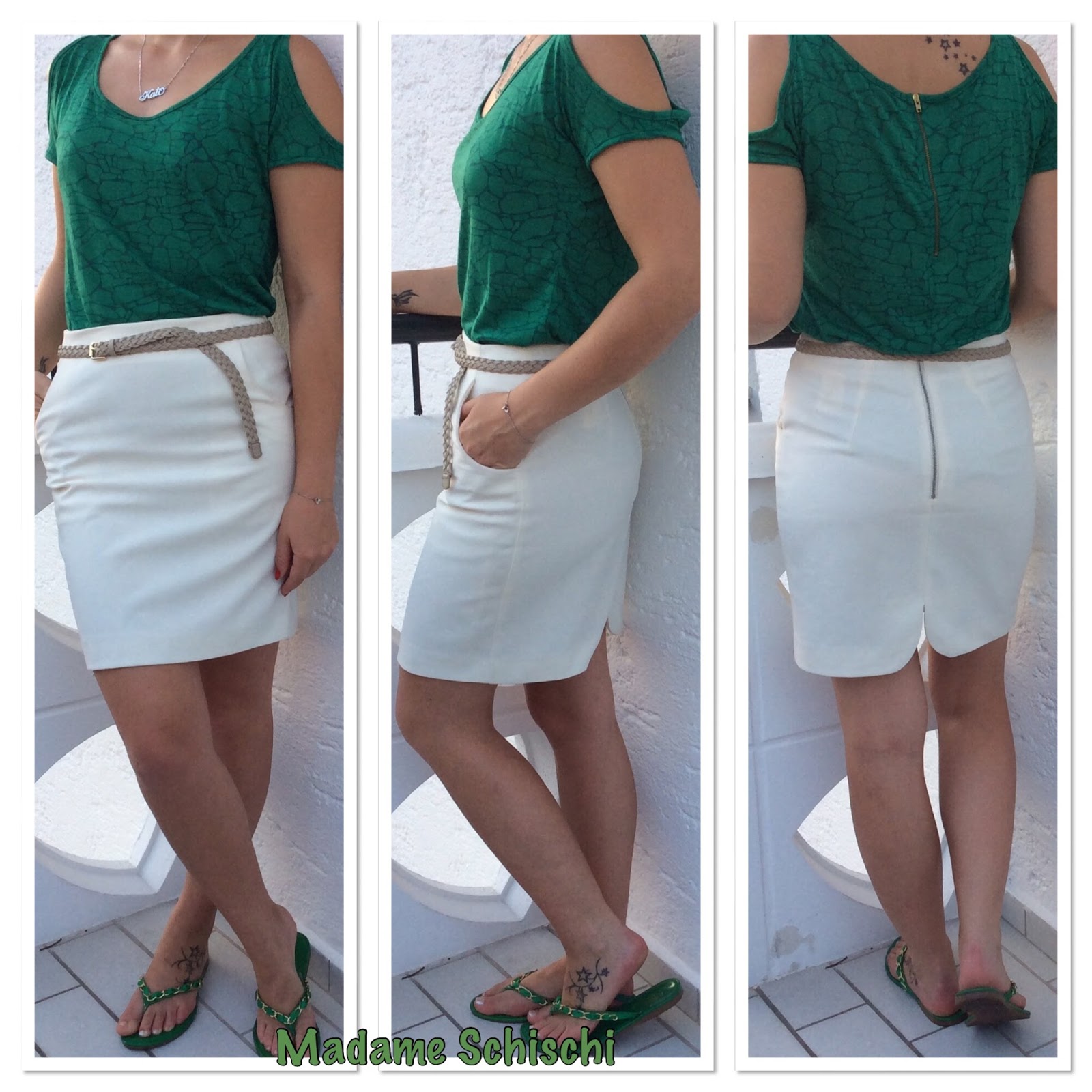 This is one of my favorite summer dresses. A super cute and light dress. In the back it is longer than in the front that makes it super special. Paired it with green sandals and my latest Bufallo super soft leather bag.