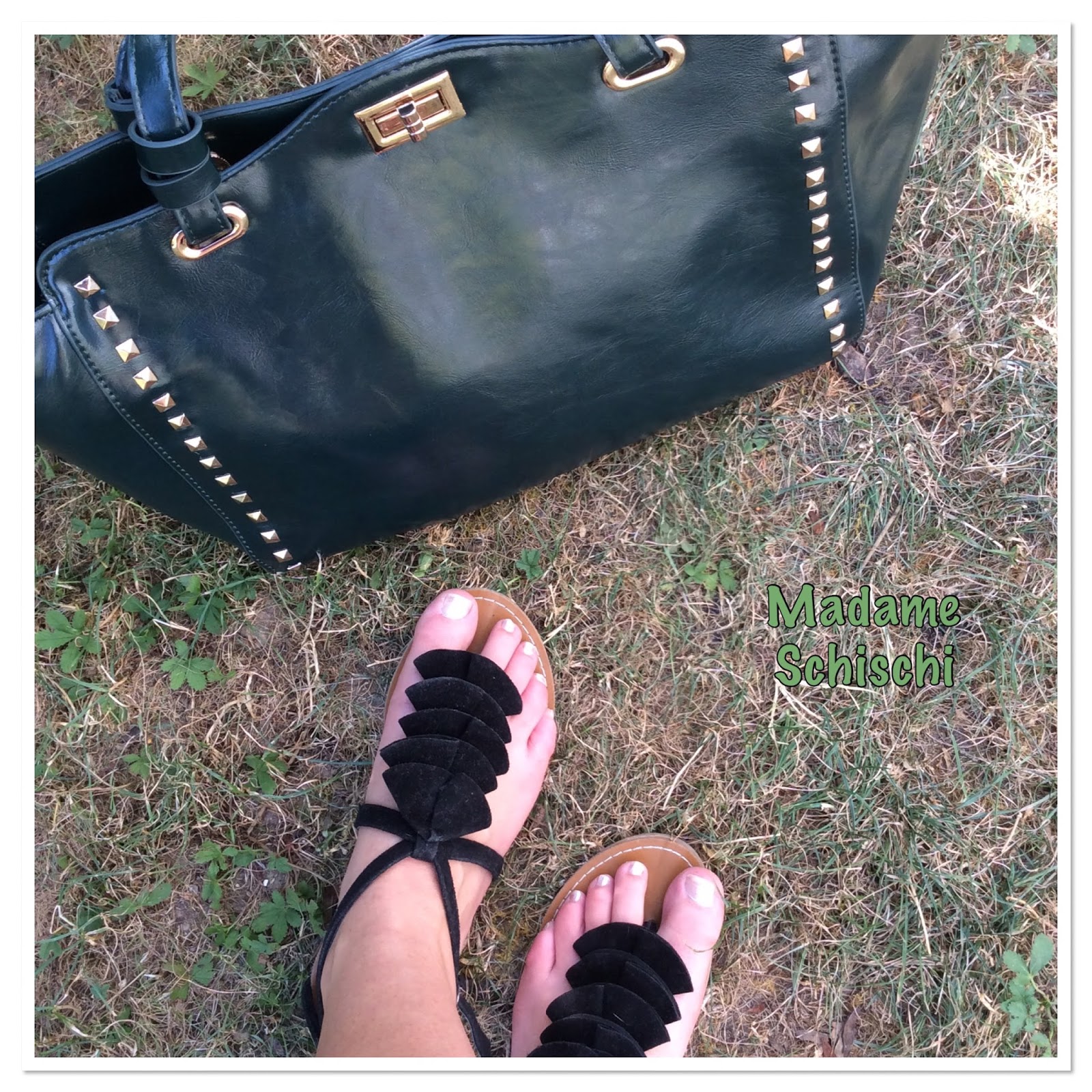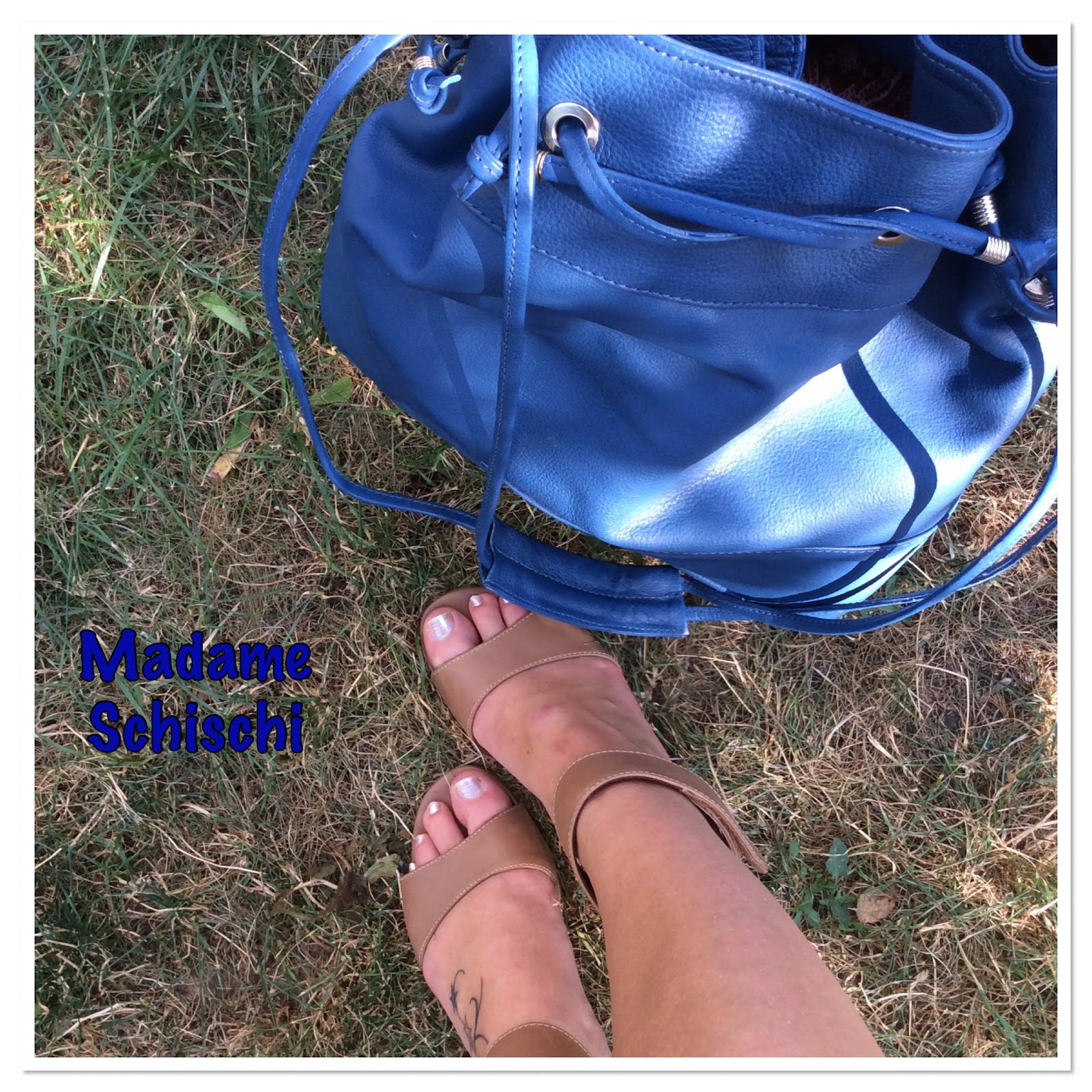 The dress is from H&M from their Basics collection – so you might get this one throughout the whole year but maybe always in other colors. The bag is real leather. It is from Buffalo and super soft. Still available and on sale at the moment.  The sandals are from Tamaris and great to wear. They are super comfy. The heel is not so high so they are great to wear thoughout a busy day and the color almost goes with any other color.