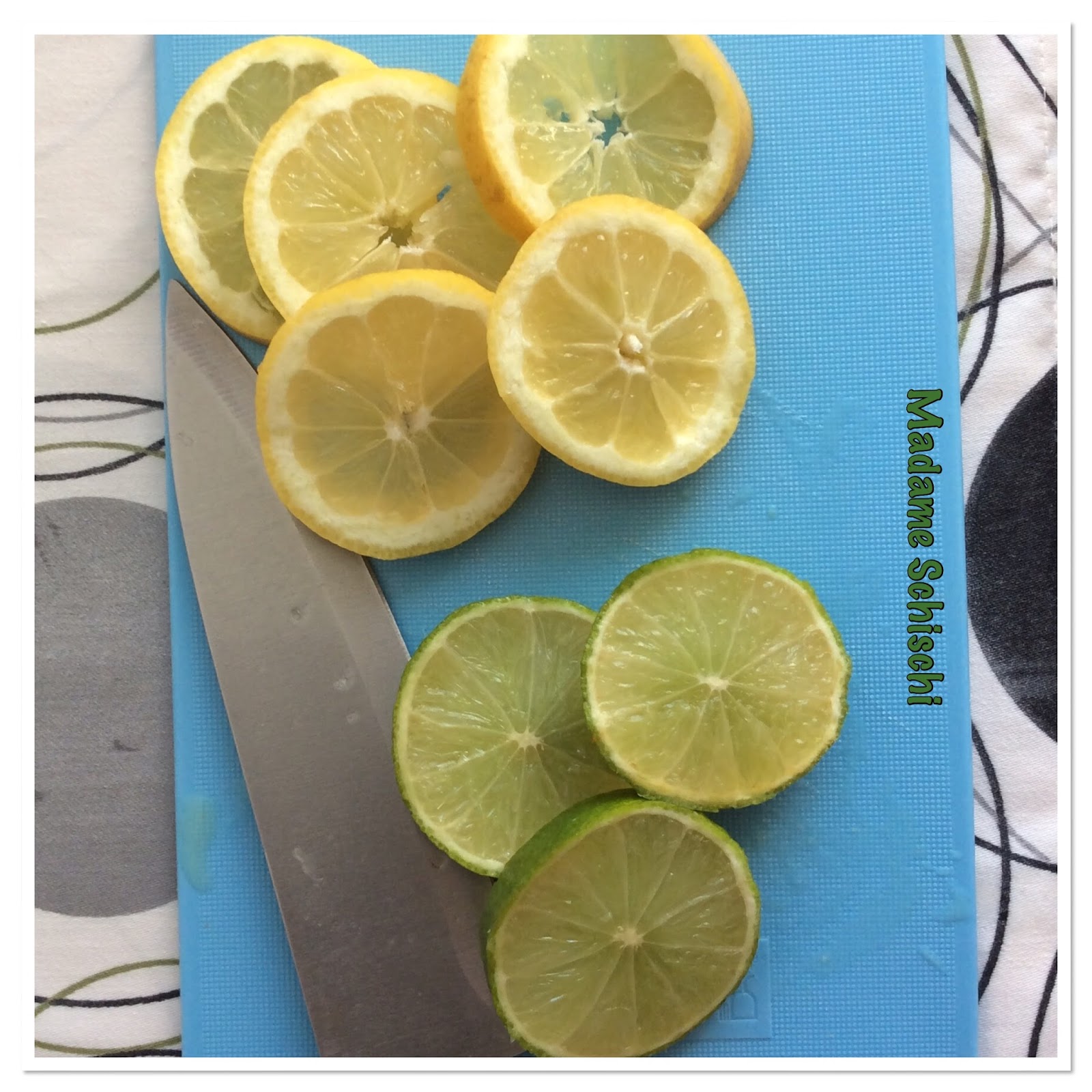 – you need lemons and limes and water (gas or non-gas) and of course a jar