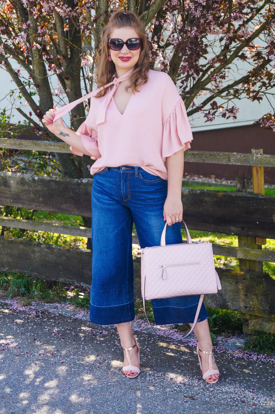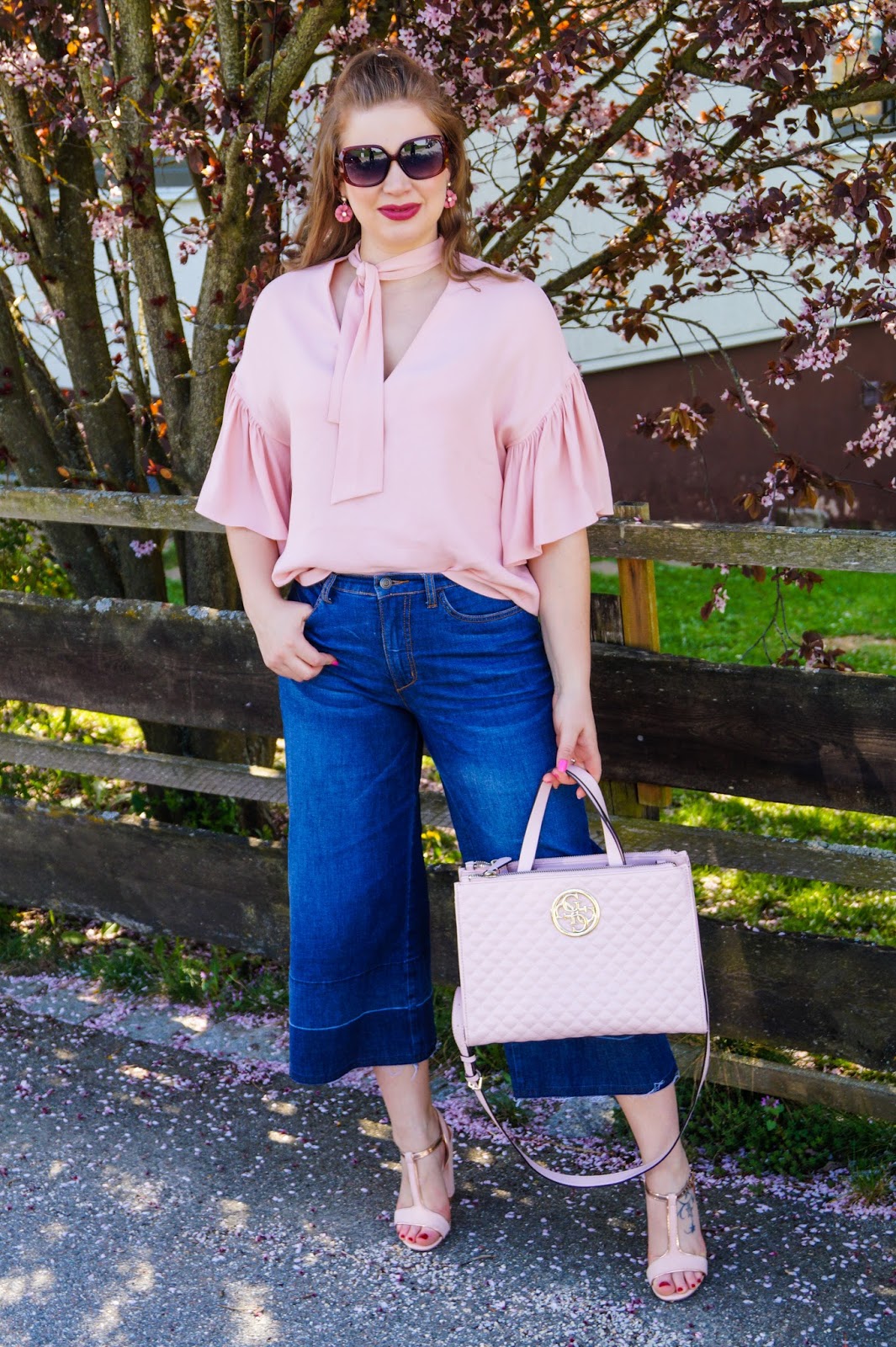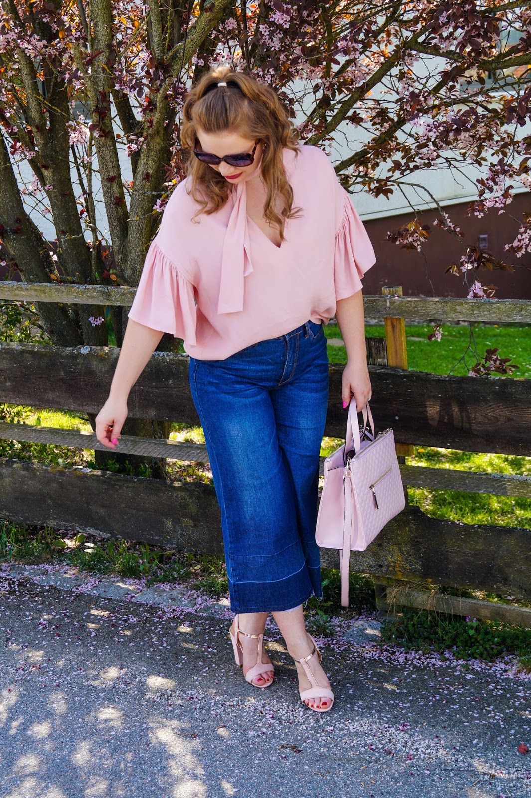 This cute baby pink blouse was another find from the Zara special price selection (also available online) and only 17 Euro. I have worn it several times since I got it and it is just super comfortable and I really love the color. You can tie a bow around your neck or just leave it open and the sleeves are terrific.