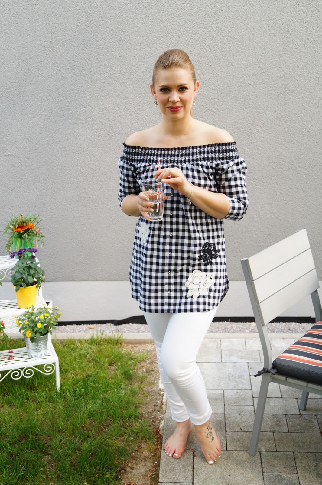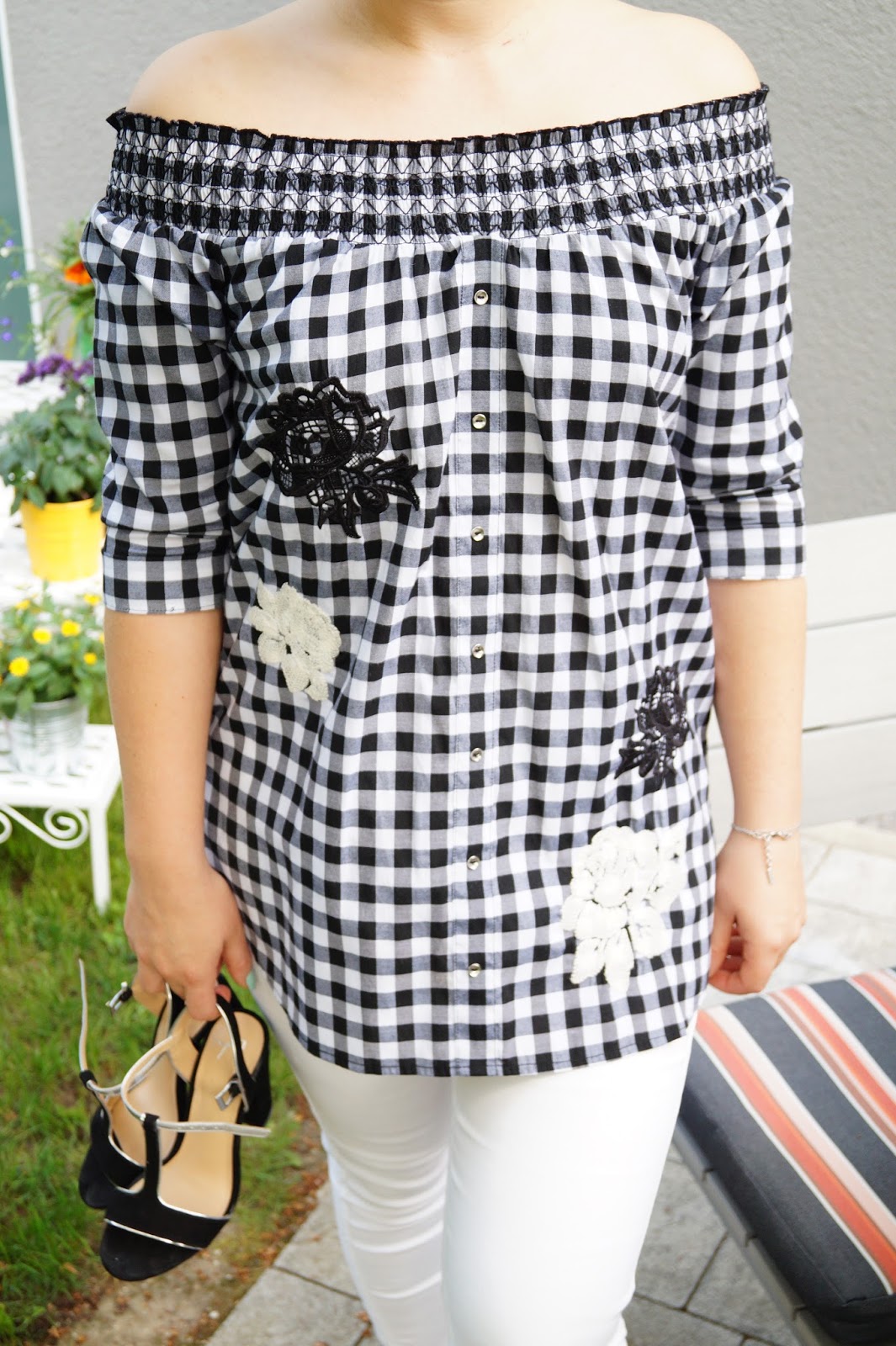 My outfit: Jeans H&M / Off the shoulder blouse New Look sold out similar here / Sandals Anna Field