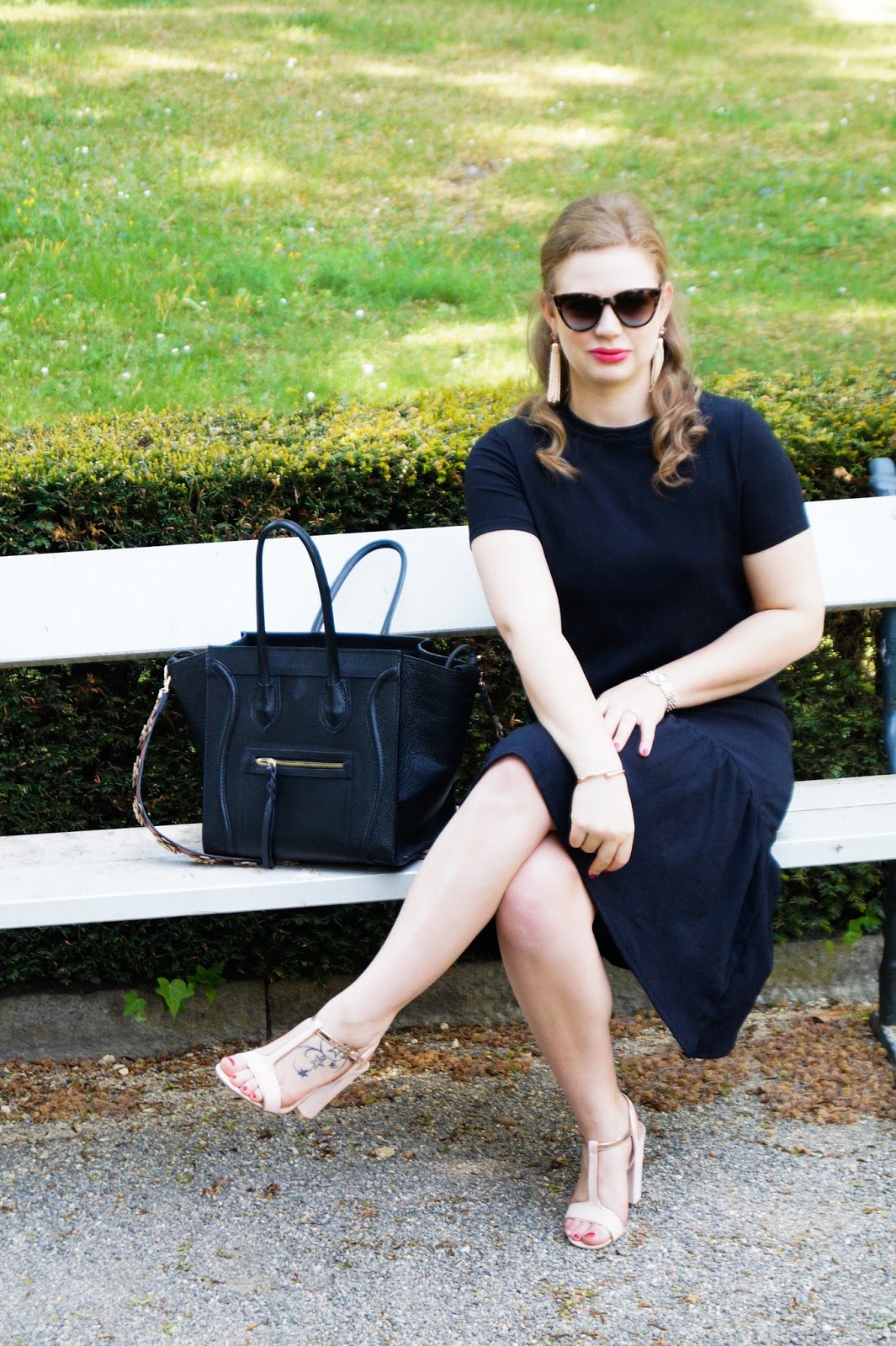 dress Zara / bag Fashion Drug sold out similar here and here / shoulder strap Hallhuber / sunnies H&M / tassel earrings H&M / block heels Anna Field similar here and here