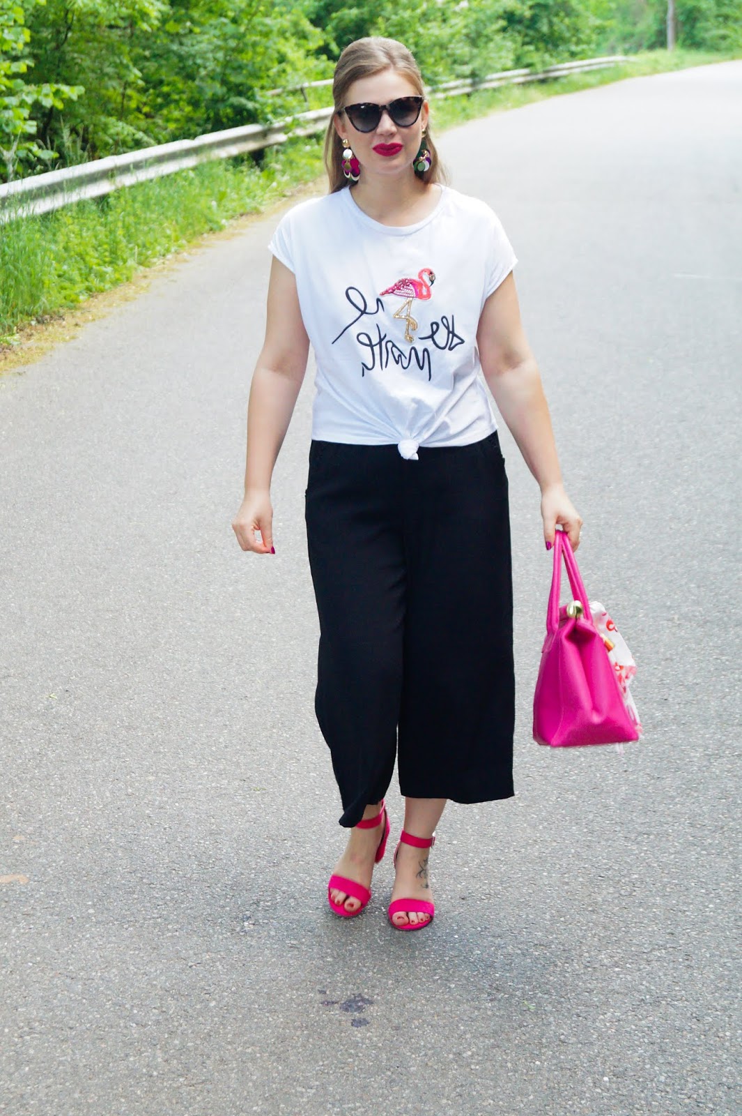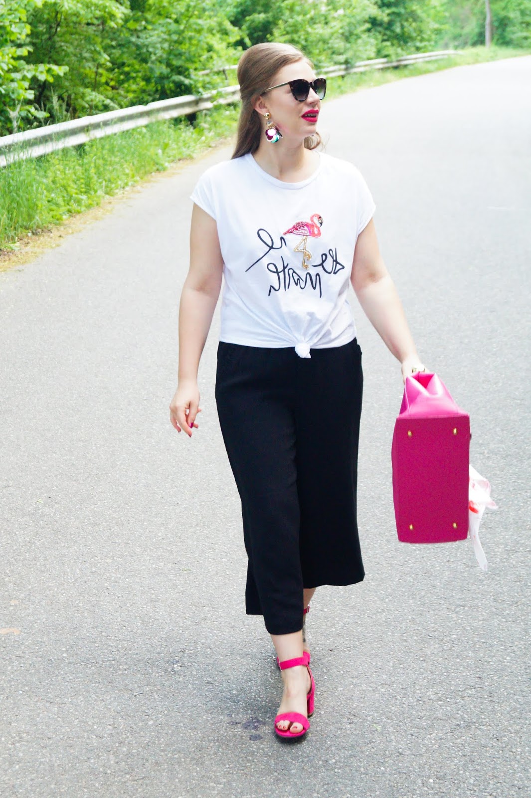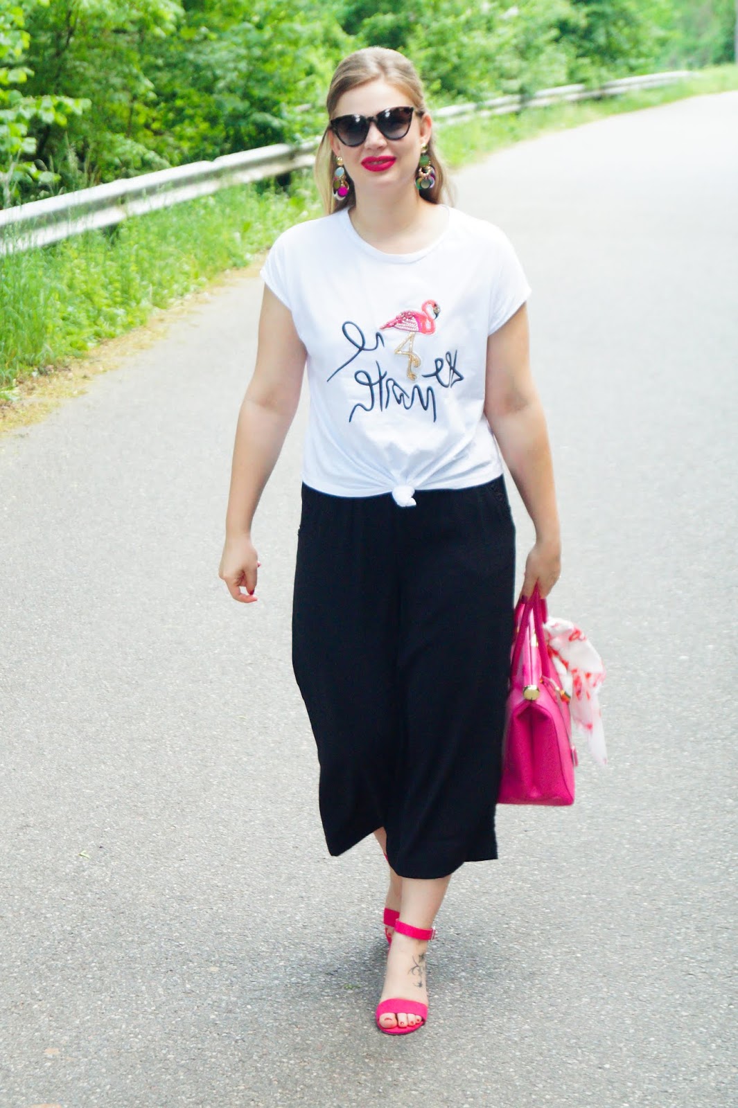 bag old similar here and here / block heels sold out similar here / culottes H&M last year similar here / shirt a gift from my sil similar here and here /