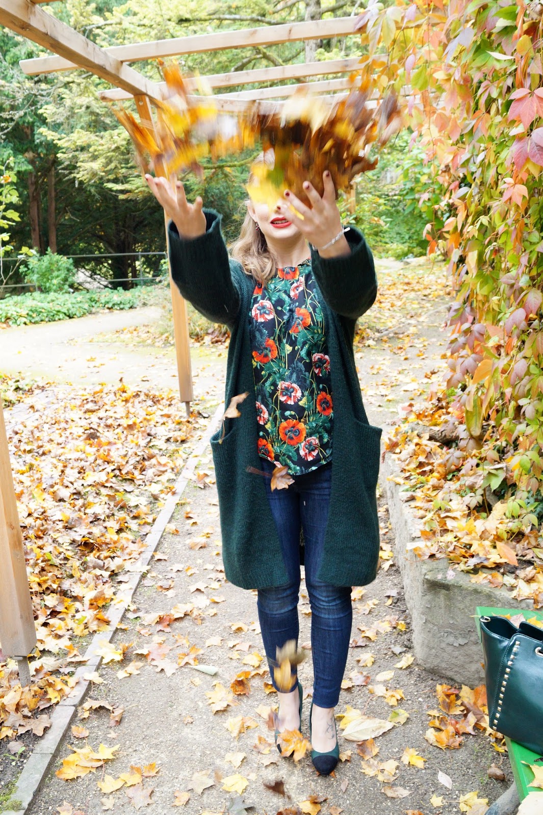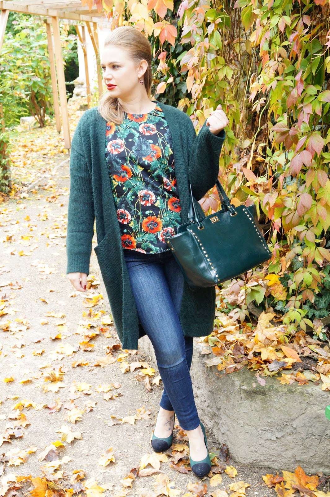 I paired it with a hunter green overlong and oversized cardigan I got last year and a pair of dark denim. The shoes matched so well and that was probably the best coincidence ever. I totally had forgotten about them and was looking for another pair as I saw them and knew right away that they where the perfect pair for this look.