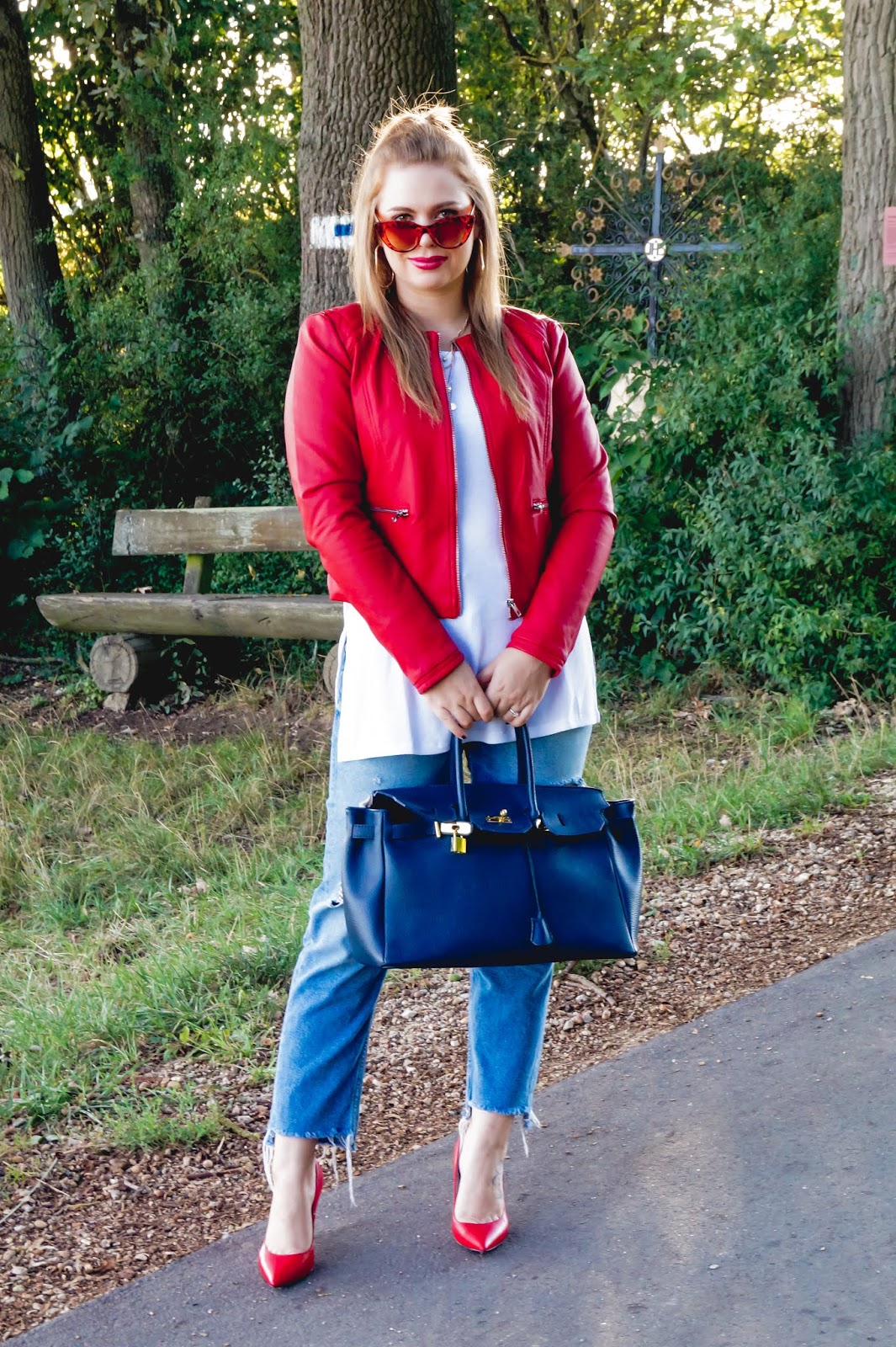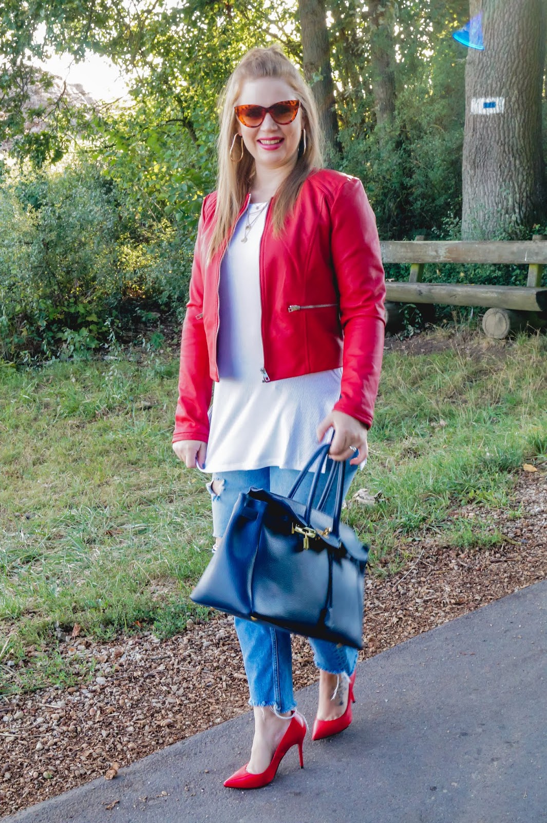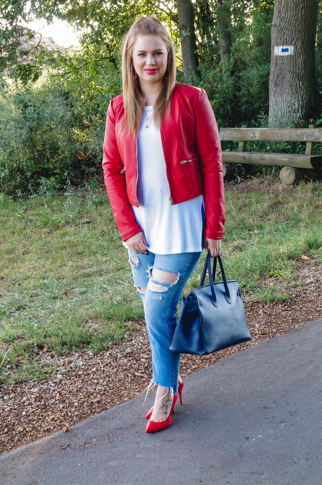 To the look. You all know I love love love a great pop of red or an all over red look and of course red lipstick. So finding this red leather jacket and the red heels this summer I was delighted. I already have so many pretty looks in my mind combining this two pieces together or wearing them single.