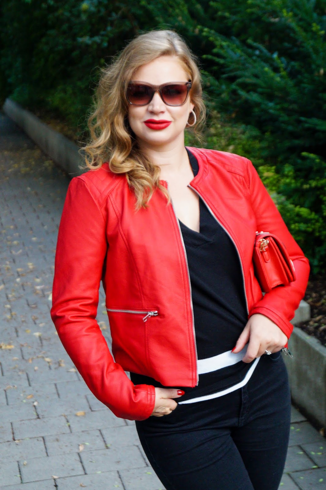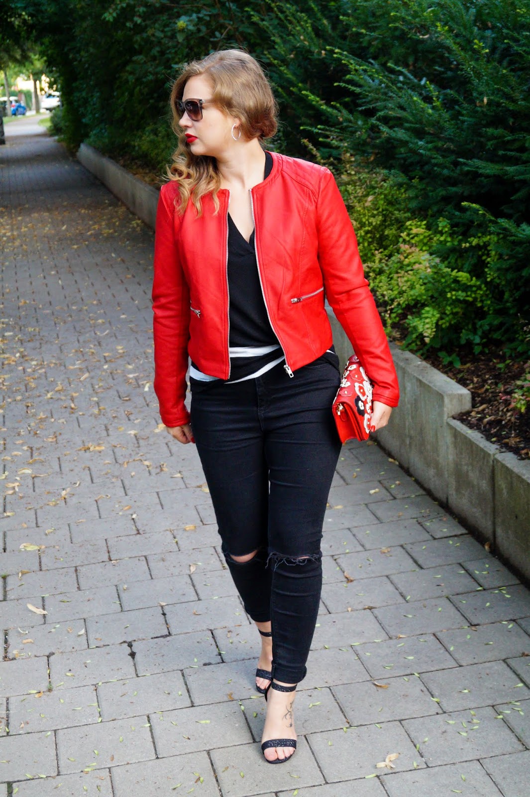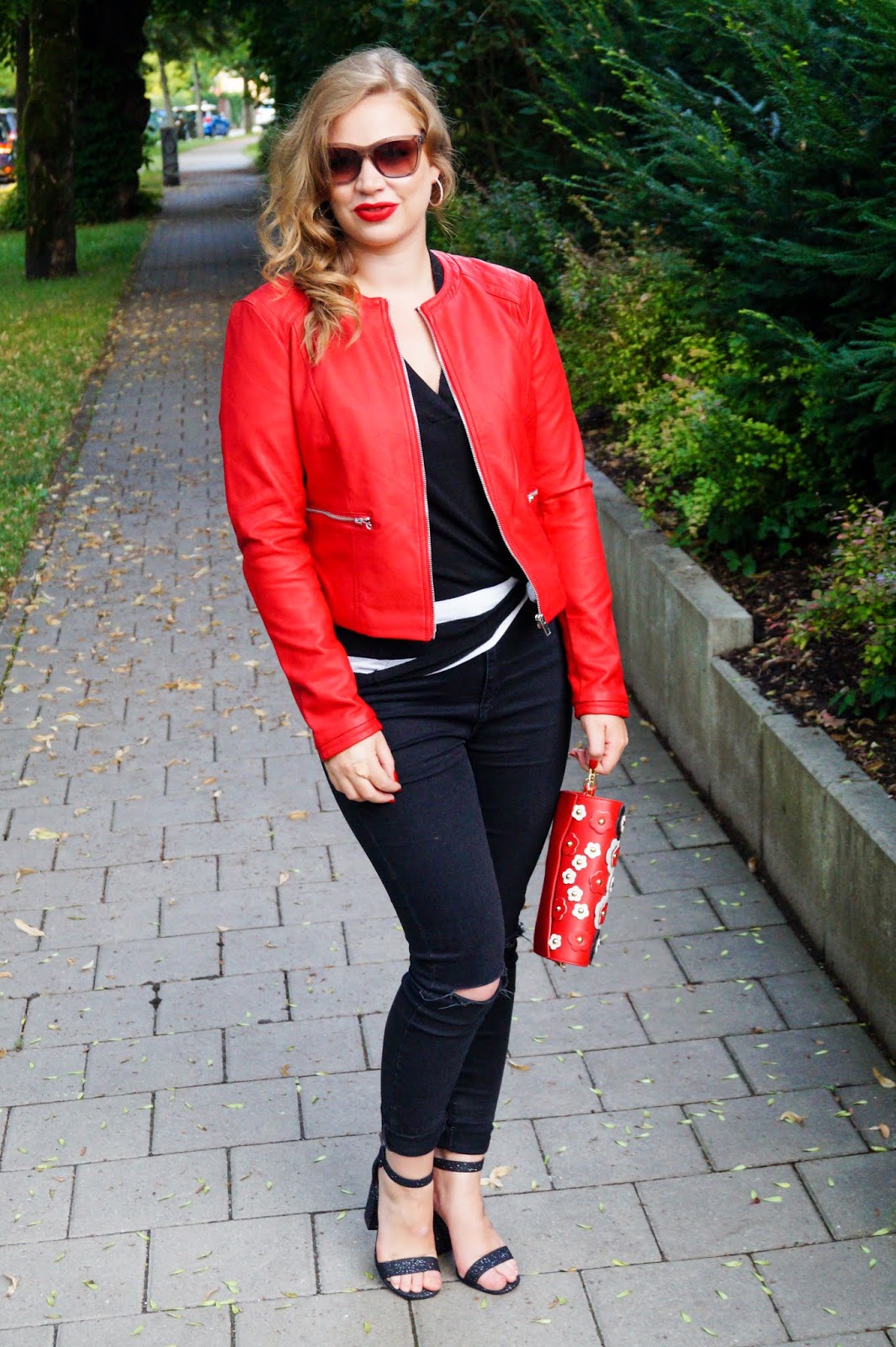 So here we are today sharing a fabulous red leather jacket with you guys. I have worn this look a few weeks back on a birthday party and really loved it. I wanted the outfit to look cool and sophisticated and I think I got that all right.