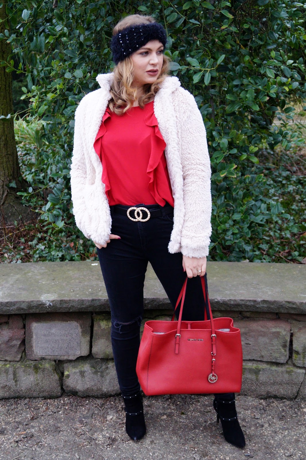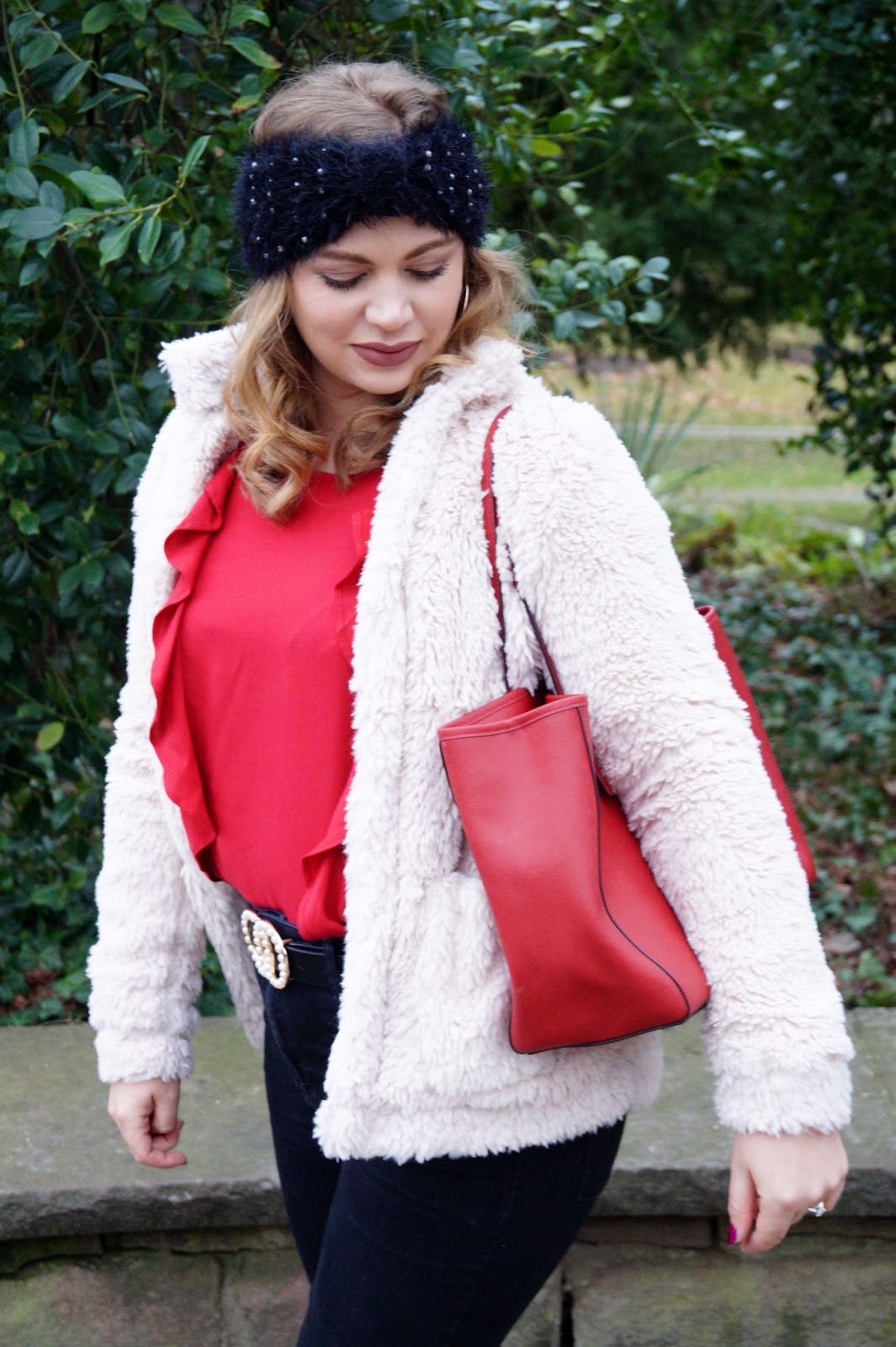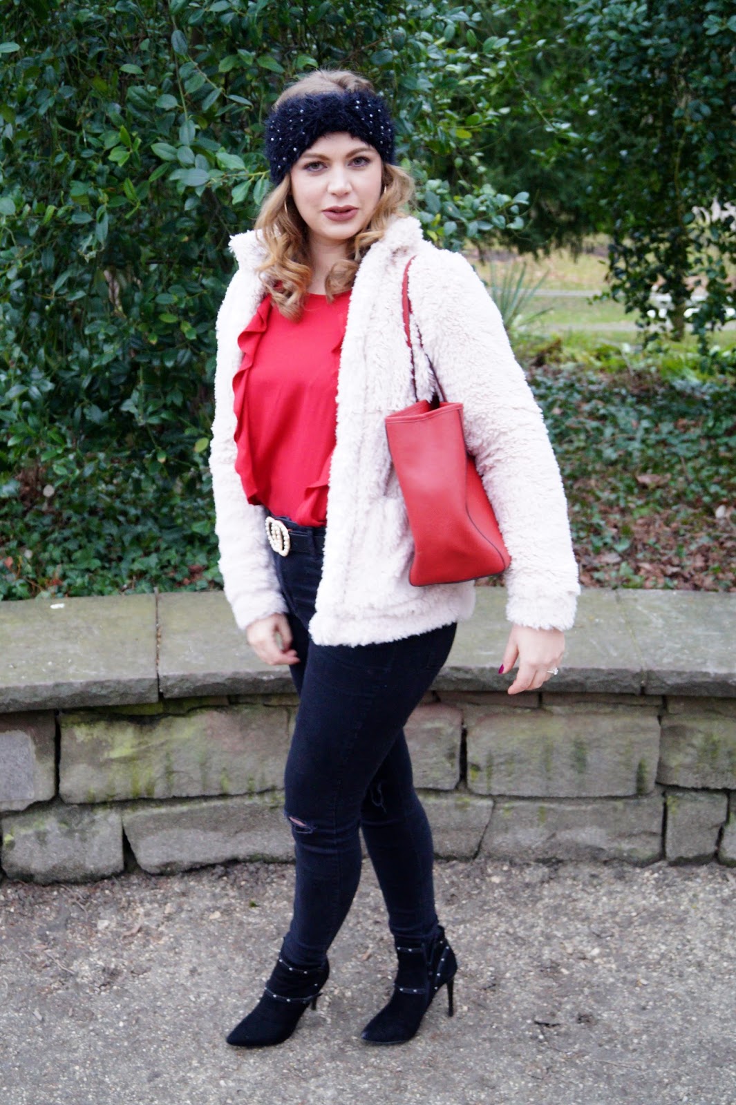 So instead of a flowery pink blouse I decided to got with a faux fur jacket and a headband I recently got. The headband was a birthday present from my future SIL so I don´t have a brand but I am listing similar ones but the jacket is from Galeria Kaufhof and the softest I have ever owned. Perfect for throwing over any kind of look you want to upgrade now. Whether it is a dress your are planning on wearing for Valentine´s or just a shirt and pants combo.