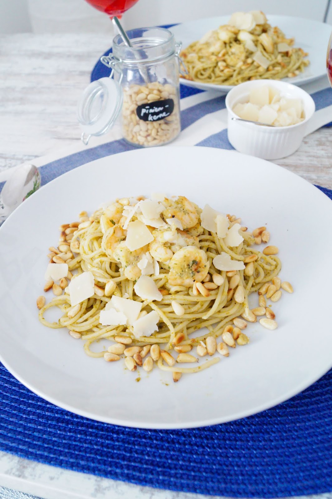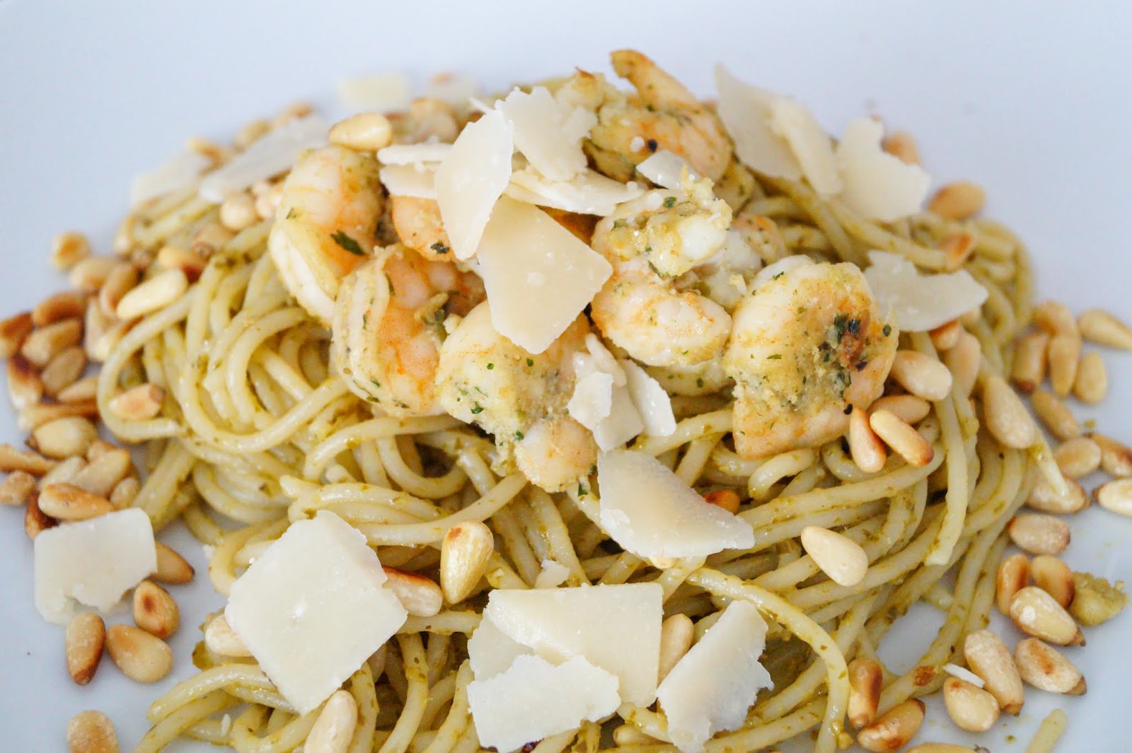 Serving this meal makes you look like a pro as you can beautifully drape it on the plate. Also the flavours of the pesto, the shrimps and the parmesan cheese go so well with the pine nuts. Overall a super quick meal to make. Takes 20 minutes max. and so