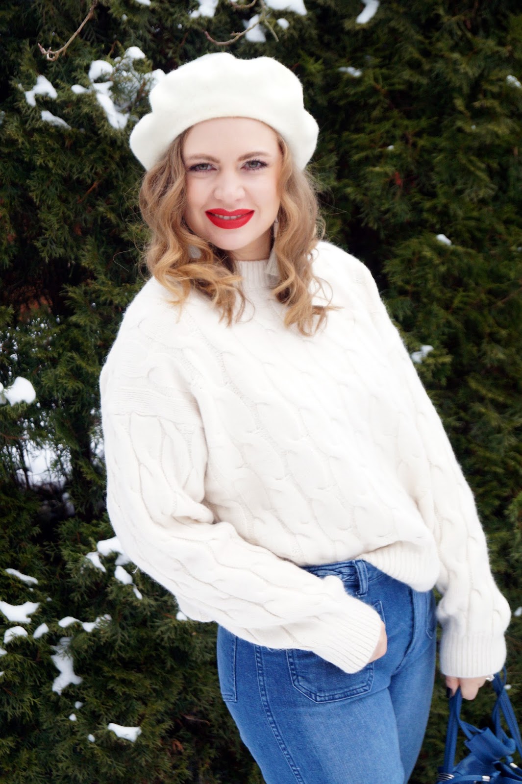 I paired the winter white knitted sweater with this gorgeous matching beret I found via Asos. It is under 20 Euro and a total staple piece of mine. I had been wearing it over and over now for the last two weeks.