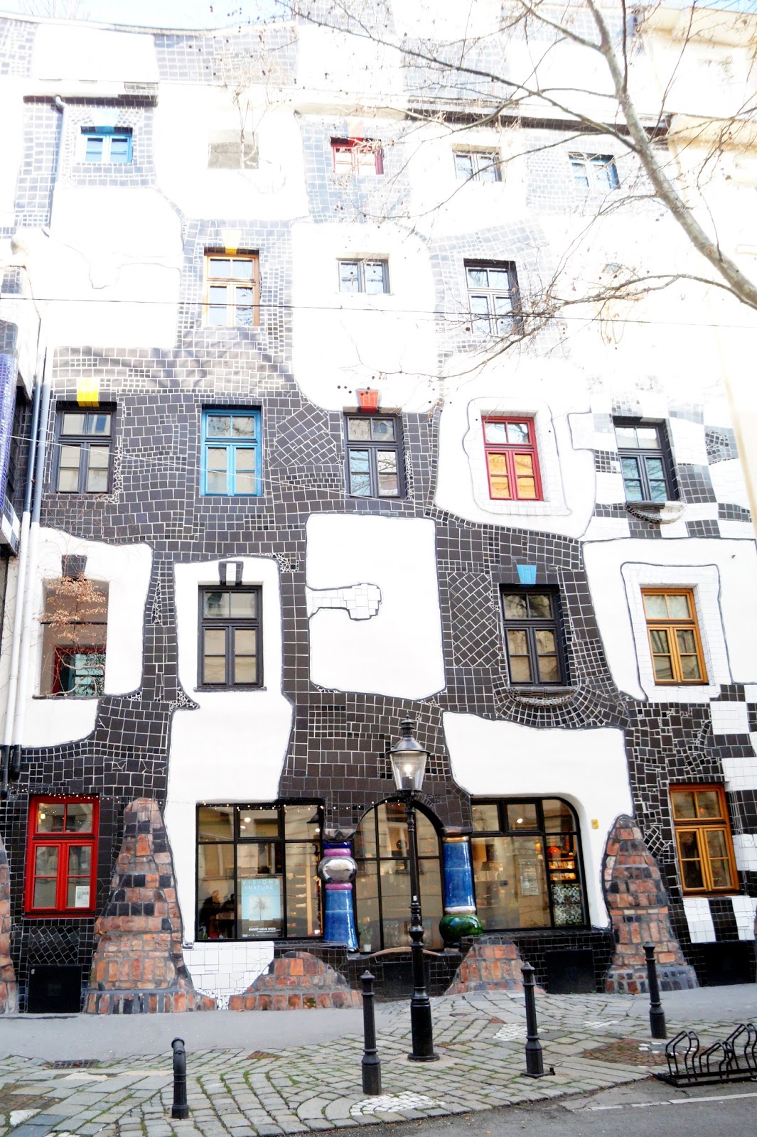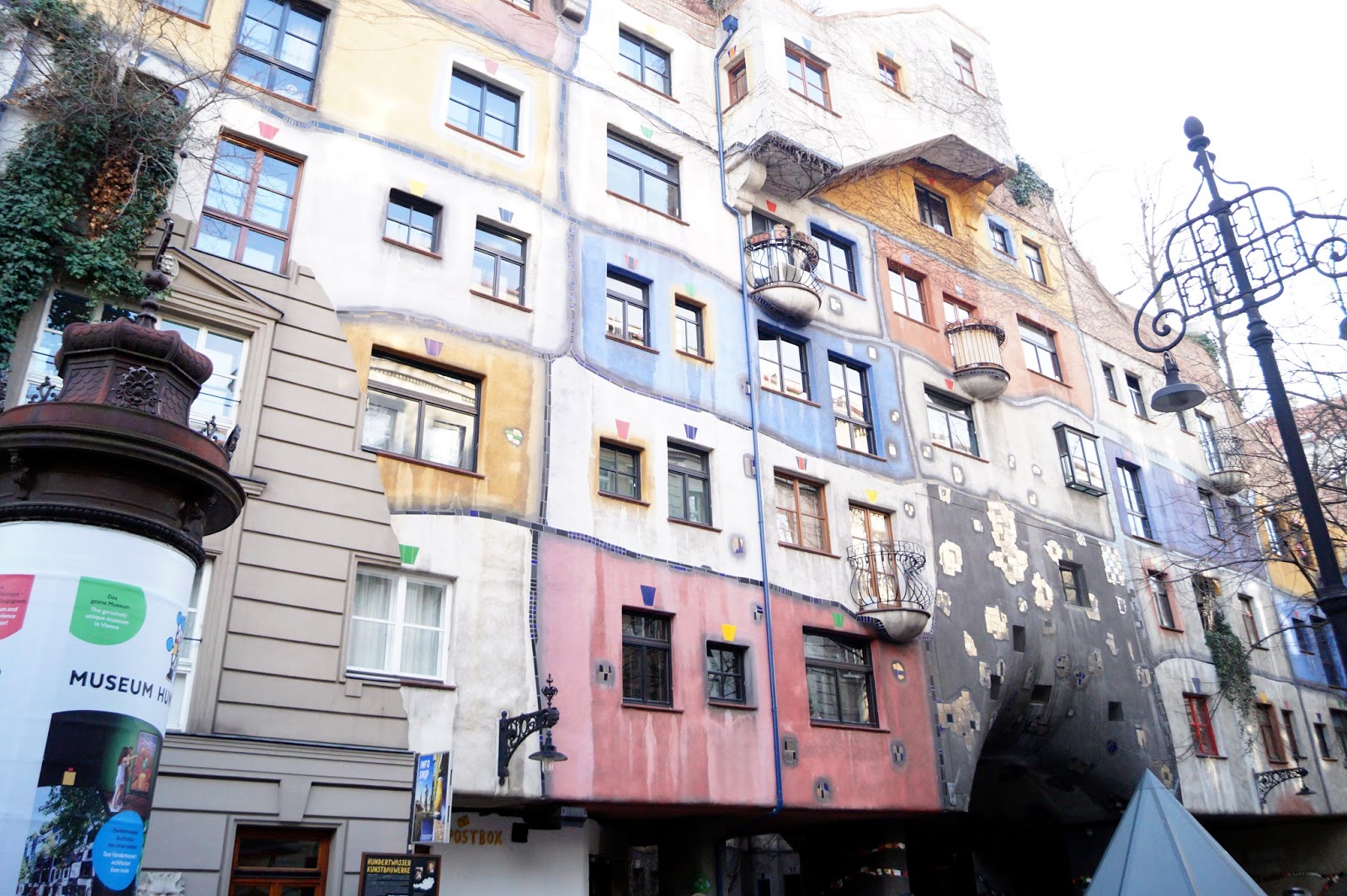 Dressed like for a Canadian Winter we took the Underground and went a little outside of the old town to visit the Hundertwasserhaus and museum. Friedensreich Hundertwasser was an Austrian architect and artist. He designed several buildings all over the world with his signature style including lots of colors and crooked floors and walls. Also his paintings are very famous.