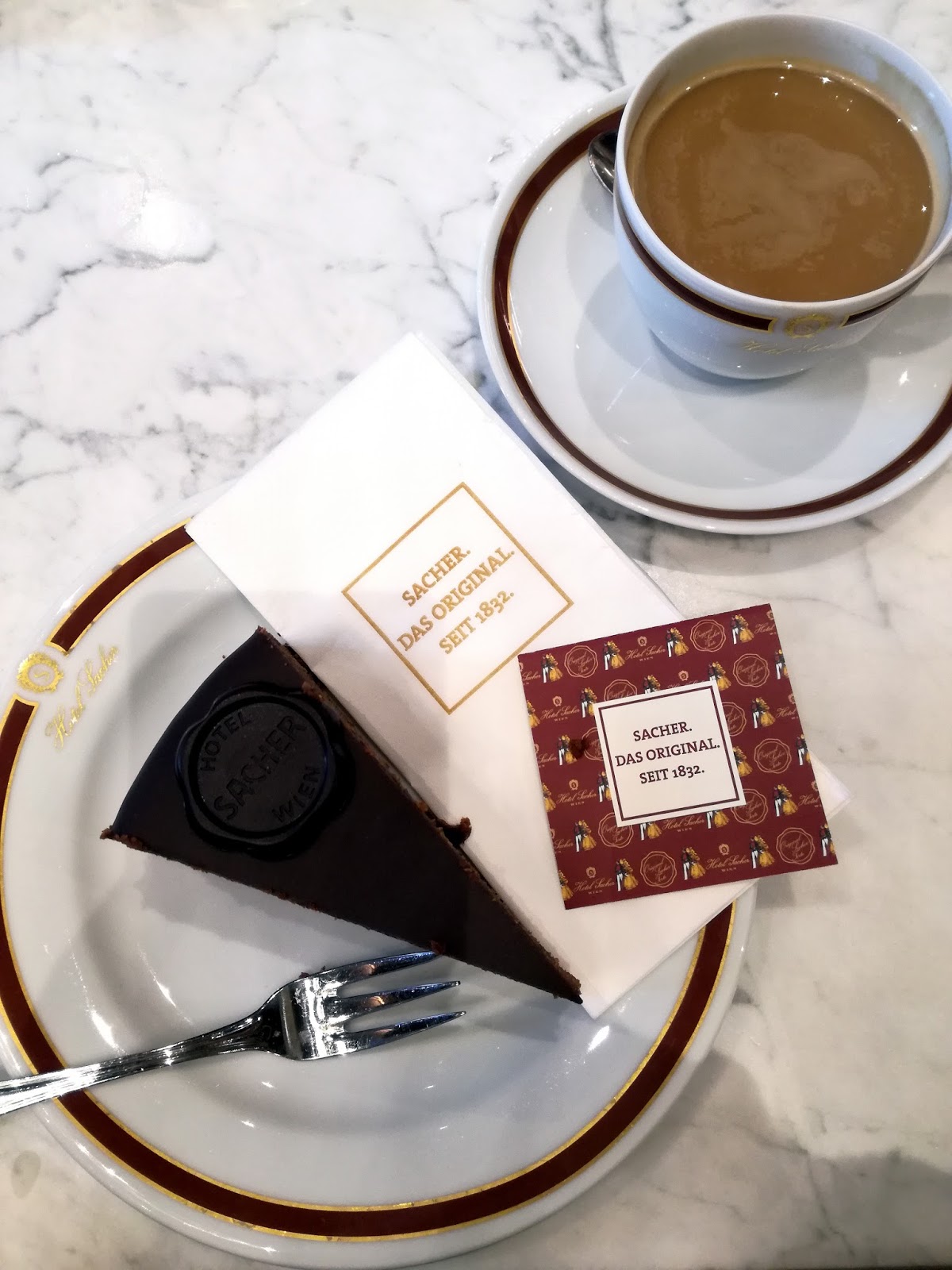 Afterwards we went to the Sacher café to enjoy some of the traditional Sacher cake as my birthday cake. The location was beautiful and so traditional with old coffee grinders, red velvet sofas and seats and marble tables. The staff is really nice and attentive so there are no long waiting times. They also serve other delicious cakes and sweets but we sticked to a classic chocolate cake with cream.